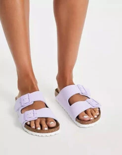 Birkenstock Arizona Vegan Lavender Fog BirkiBuc Regular