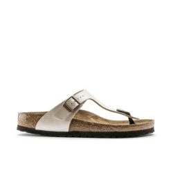 Inspired by the natural imprint of a foot in the sand and feels just like walking barefoot, Birkenstock sandals are anatomically shaped and supports the natural walking action of your foot.  The Birkenstock Birko-Flor Gizeh thong style guarantees a perfect fit and naturally surrounds the toes and guides them back to their natural position which are often constricted by other footwear.