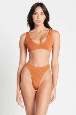 A premium, high filament nylon yarn is knitted into our classic bound tubular crinkle to create a lush, velvety + shimmering fabric. This unique + inimitable knit construction allows 4 way stretch + recovery while maintaining our signature body-hugging shape.Â