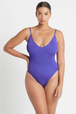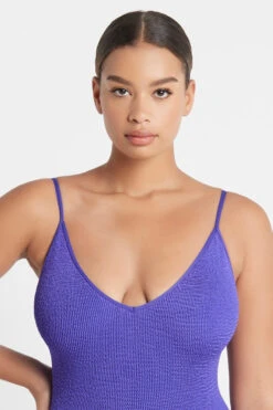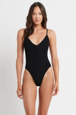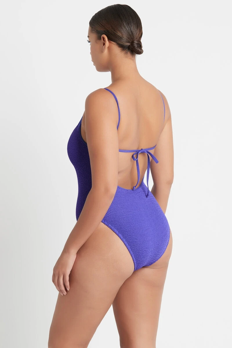 Plunged neckline and low, scoop back- Mid-cut coverage- Adjustable skinny straps loop through and tie at back- Light support. One Size fits most. Made in AustraliaÂ