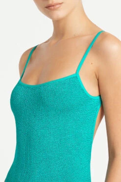 – Low, open scoop back with thin shoulder straps