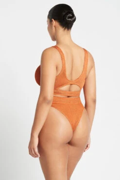 The alluring new evolution of our shiny bound crinkle, shimmer features an incredibly soft handle + luxurious shine. Available in shimmer bikinis, shimmer one-pieces + bodywear, this exclusive unsized knit fabric glows beneath the sun for a covetable + opulent look to elevate your summer season.