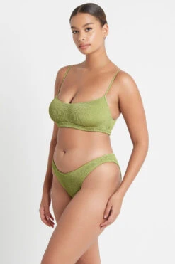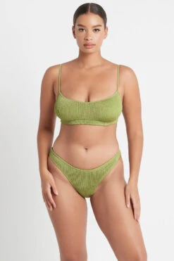 A premium, high filament nylon yarn is knitted into our classic bound tubular crinkle to create a lush, velvety + shimmering fabric. This unique + inimitable knit construction allows 4 way stretch + recovery while maintaining our signature body-hugging shape.Â