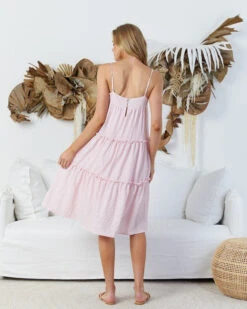 Perfect midi tiered dress. Shoe string adjustable straps with tired skirt. From brunch to shopping dates, this dress will last you all Summer long!