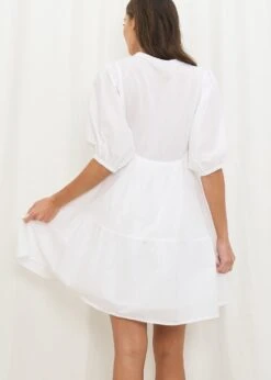 Who knew looking stylish could be so easy?! The ‘Hallie Dress’ is the ultimate everyday piece with its perfectly placed laddering on the front. Featuring an angelic white tone, mini length, v-neckline with buttons, mid-length sleeves and pockets. Your perfect go to dress.