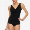 Powernet fabric has been incorporated in the front of the suit to smooth and flatten the tummy and shape curves.