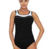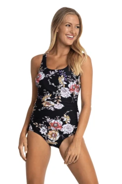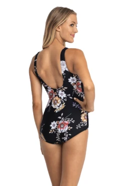 Powernet fabric has been incorporated in the front of the suit to smooth and flatten the tummy and shape curves.