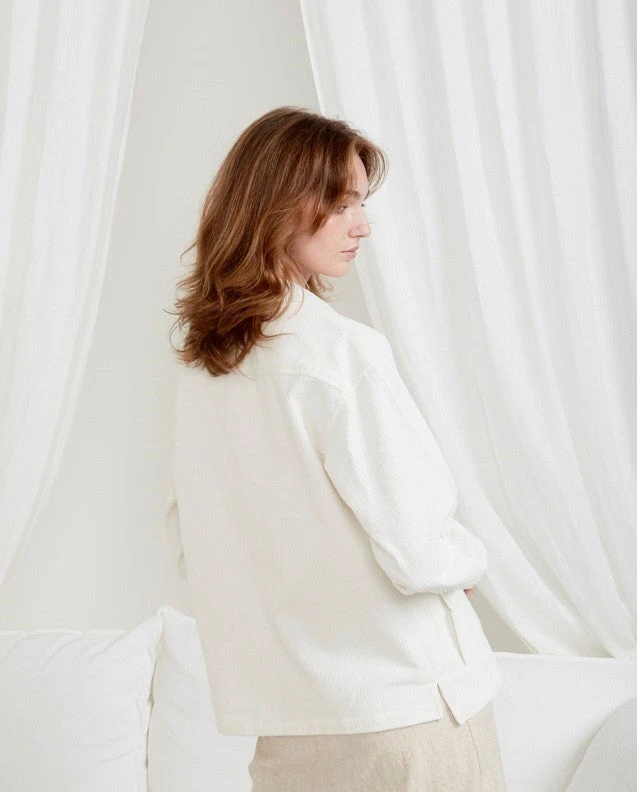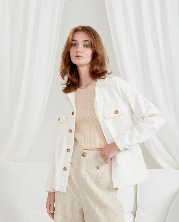 The Peyton Cord Jacket in white is super cosy and perfect for everyday wear. Style back with a tee underneath and denim jeans for an everyday look. A must-have wardrobe staple for those cooler months!