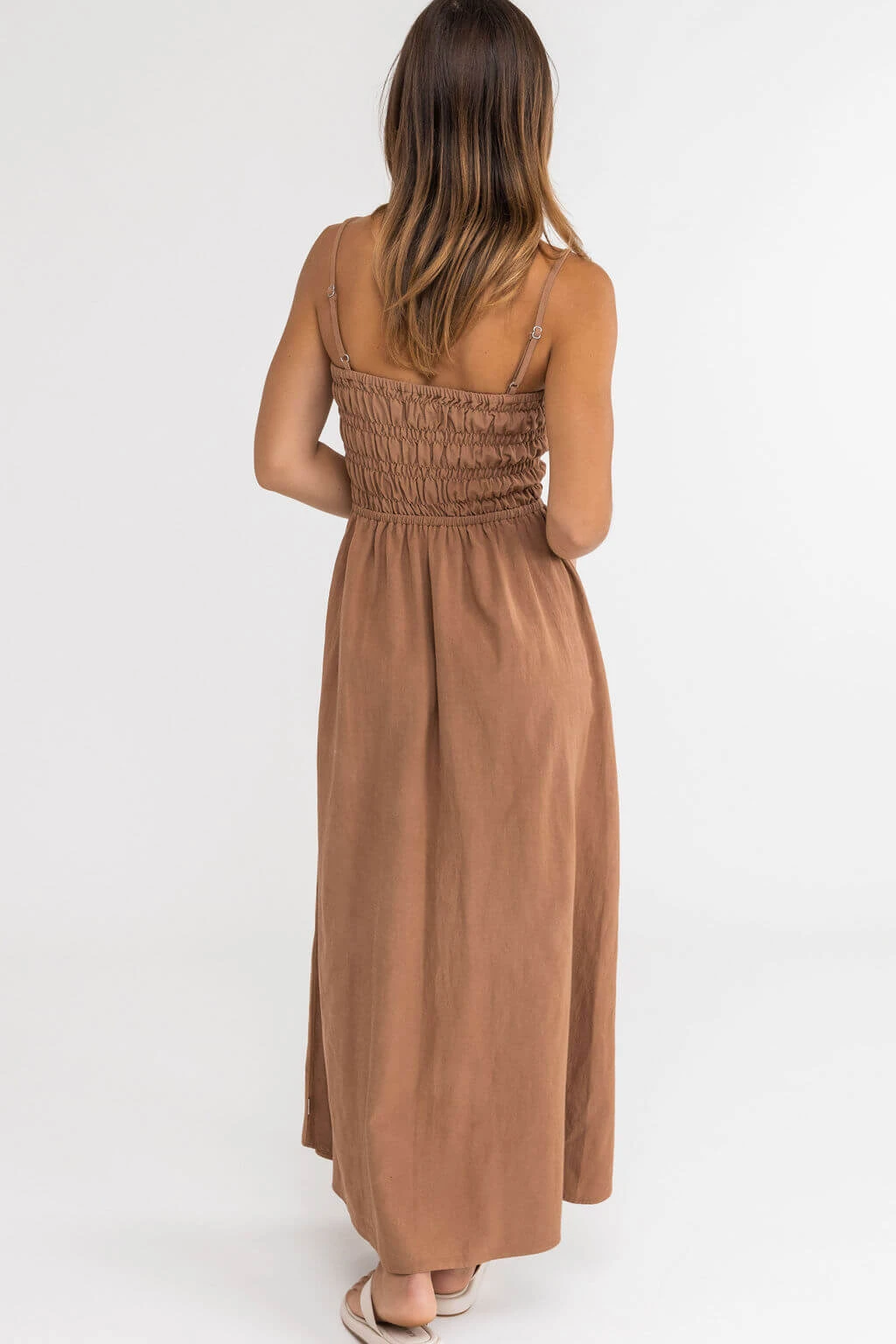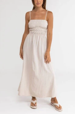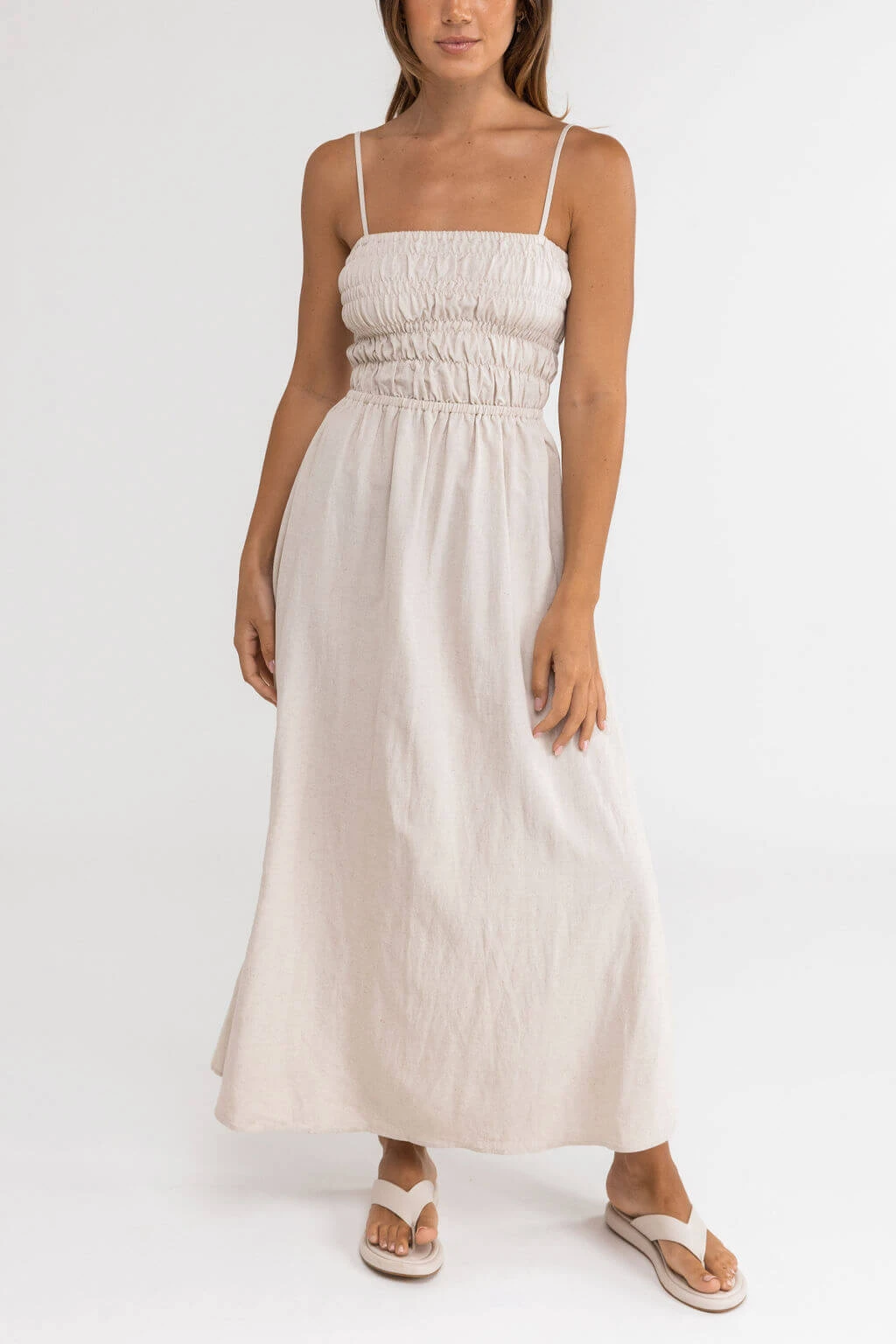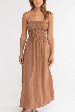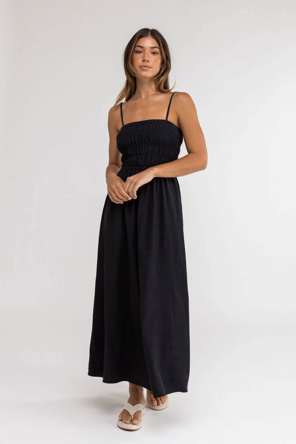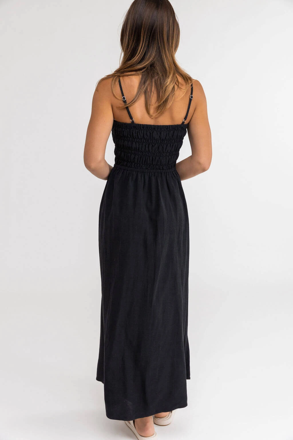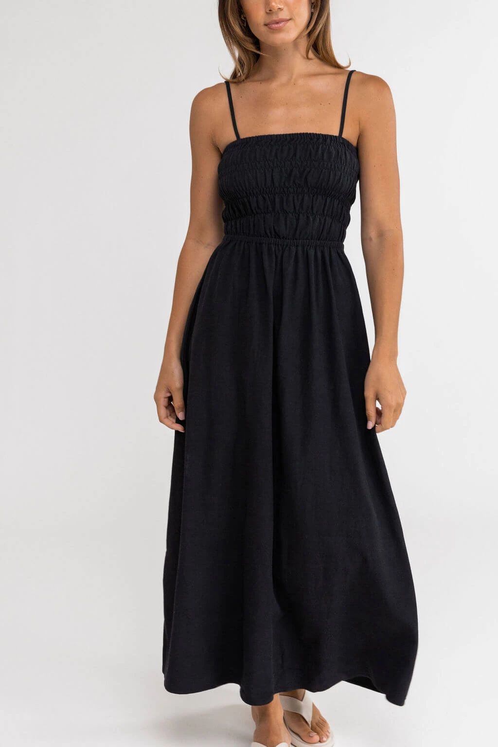 Made for breezy summer days and effortless everyday wearing, the Classic Shirred Midi Dress features a smocked front and back bodice, straight neckline and adjustable straps a season essential.