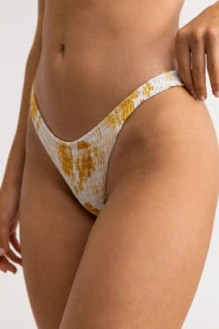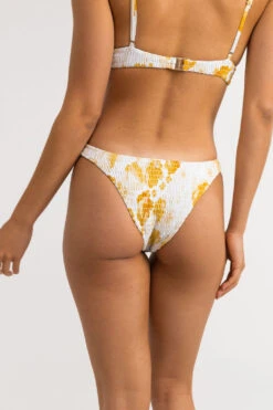 Made for dreamy days under the sun, the Harmony Smocked Beach Pant features a vintage inspired print in a smocked texture. Designed in sun drenched yellows and crisp white, this swim bottom is perfect for long summer days by the ocean.Â