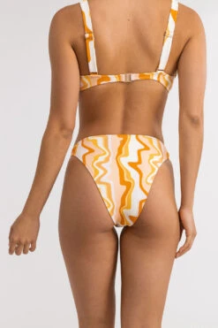 Melt into sundrenched moments spent by the water with our Heat Wave O Ring Hi Waist Pant. Featuring a custom printed design on gorgeous bubble texture and dreamy gold hardware details.