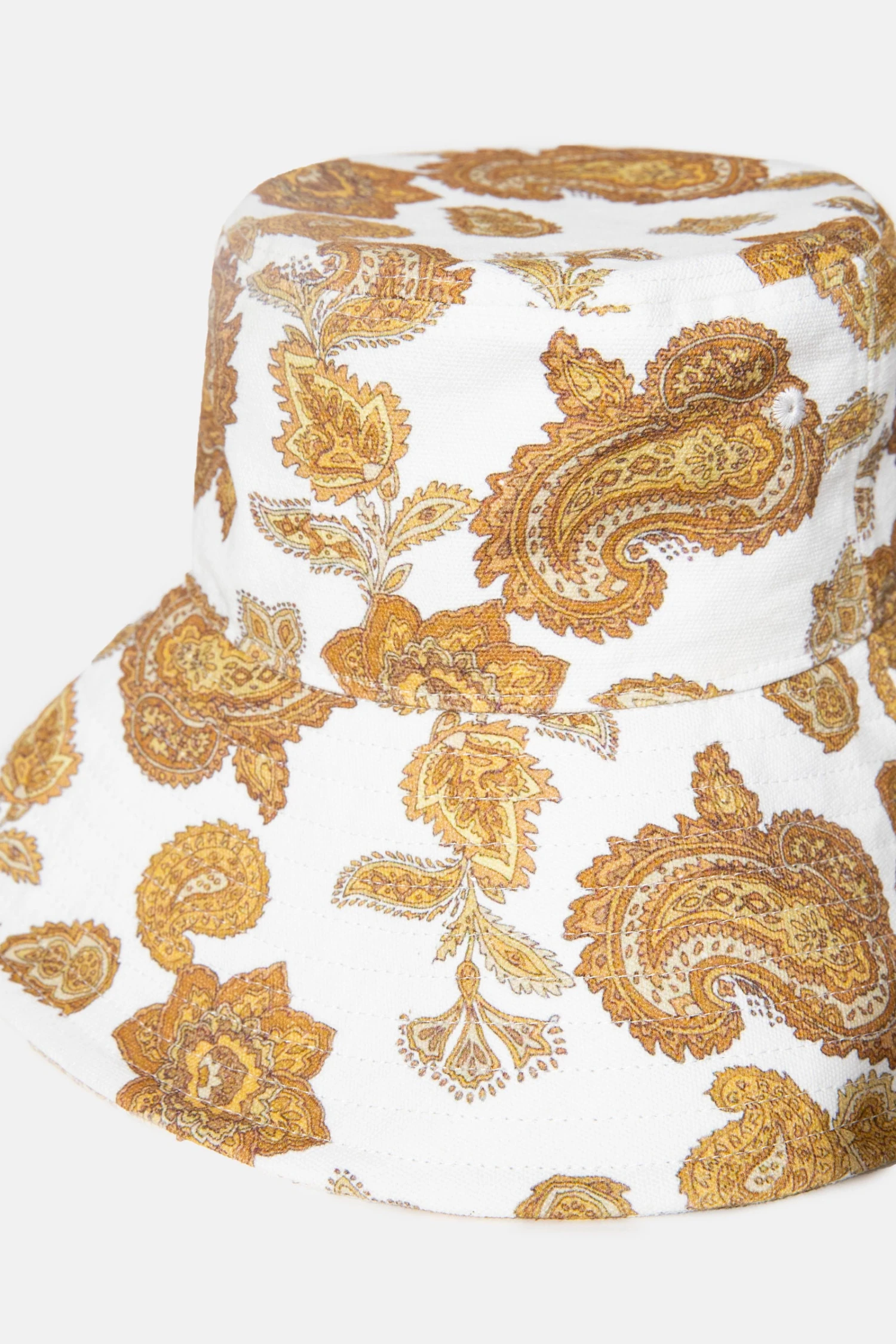 Cut bucket hat with a paisley print.