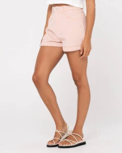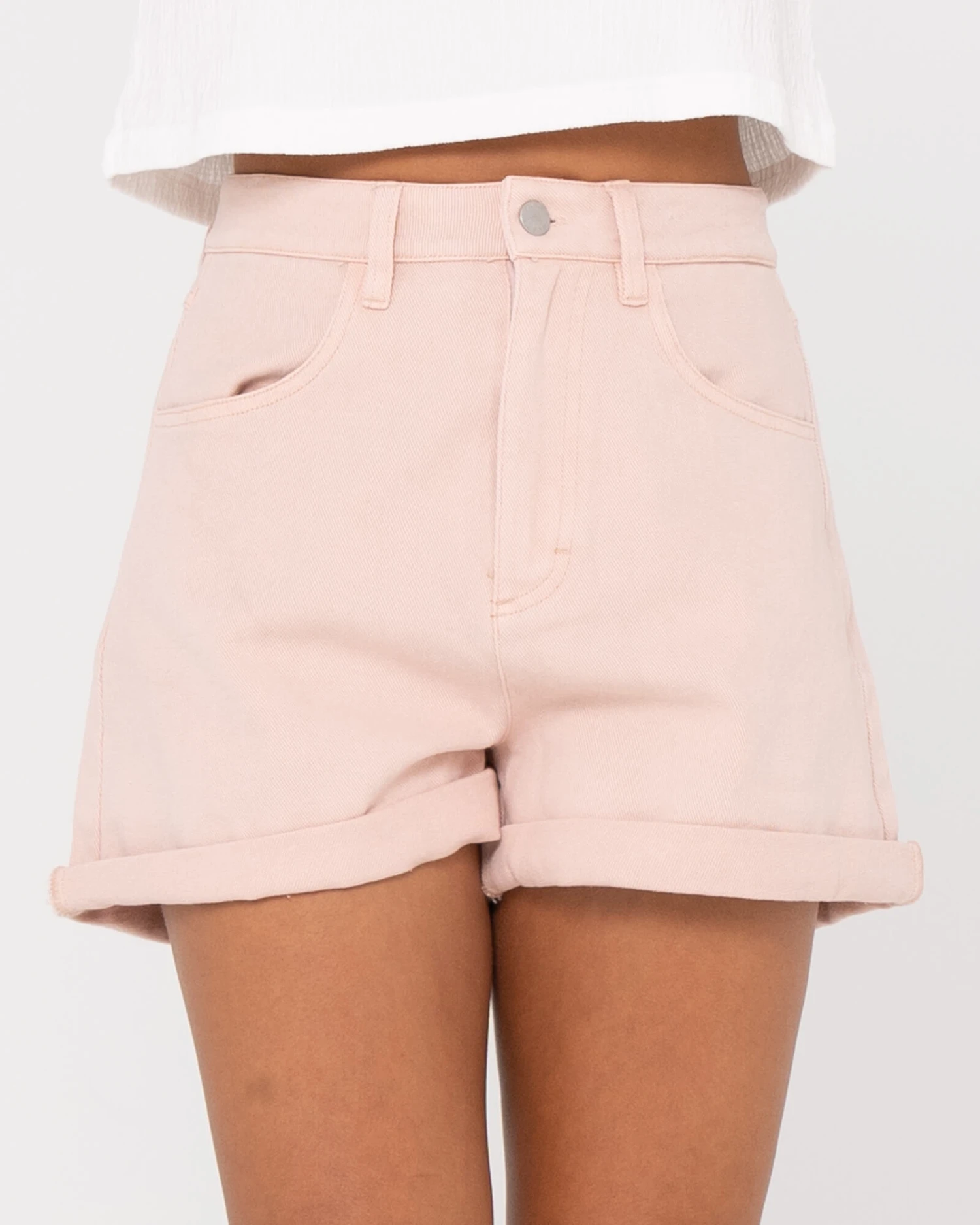 High Waisted Relaxed Fit Short With Rolled Hems And Embroidery Detail. Material: Twill Rigid Denim 100% Cotton