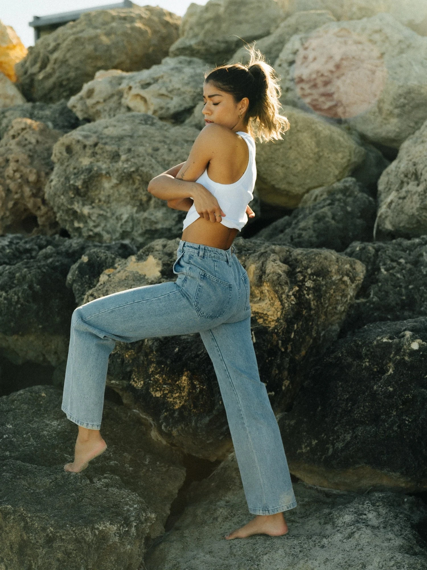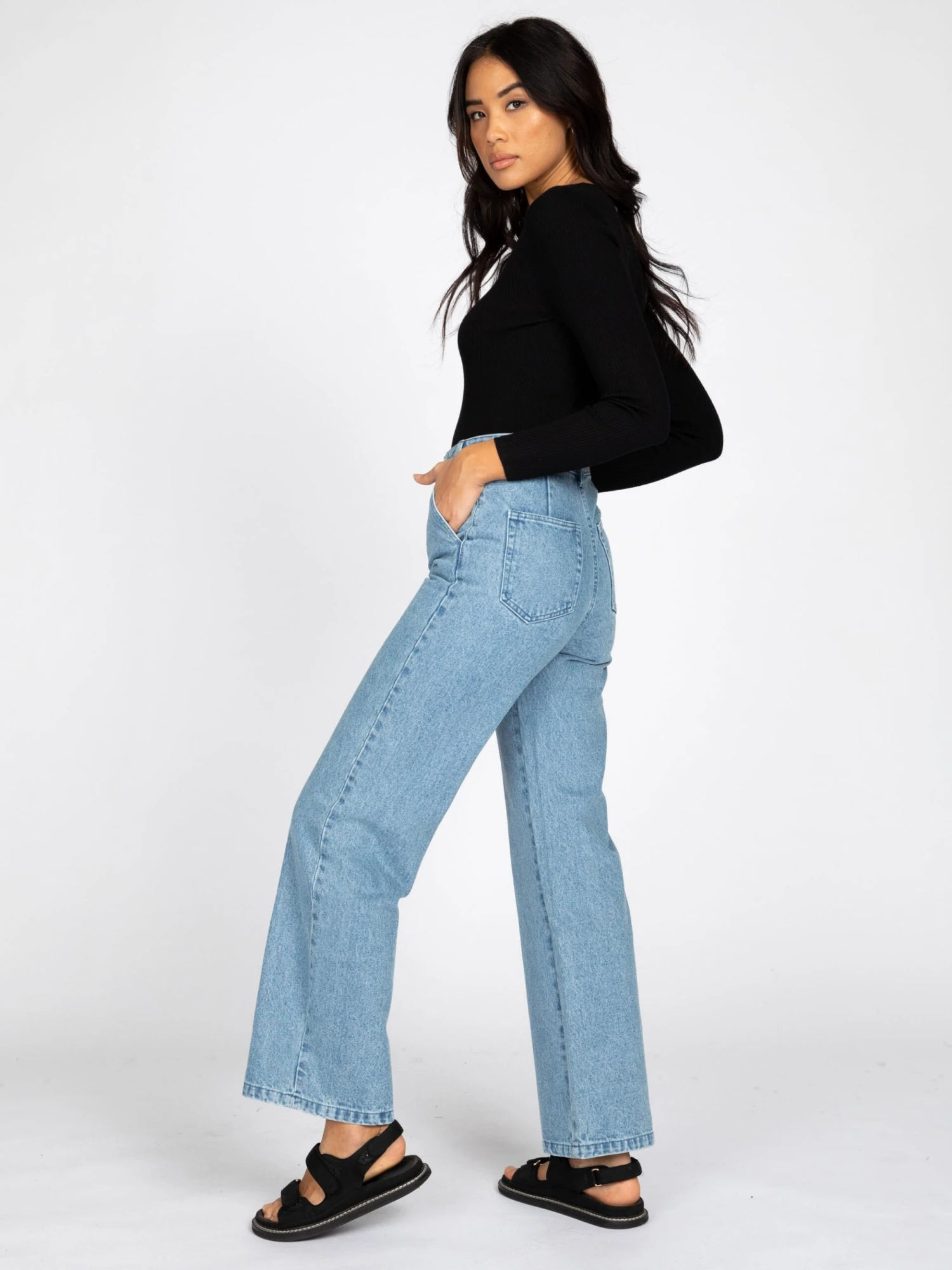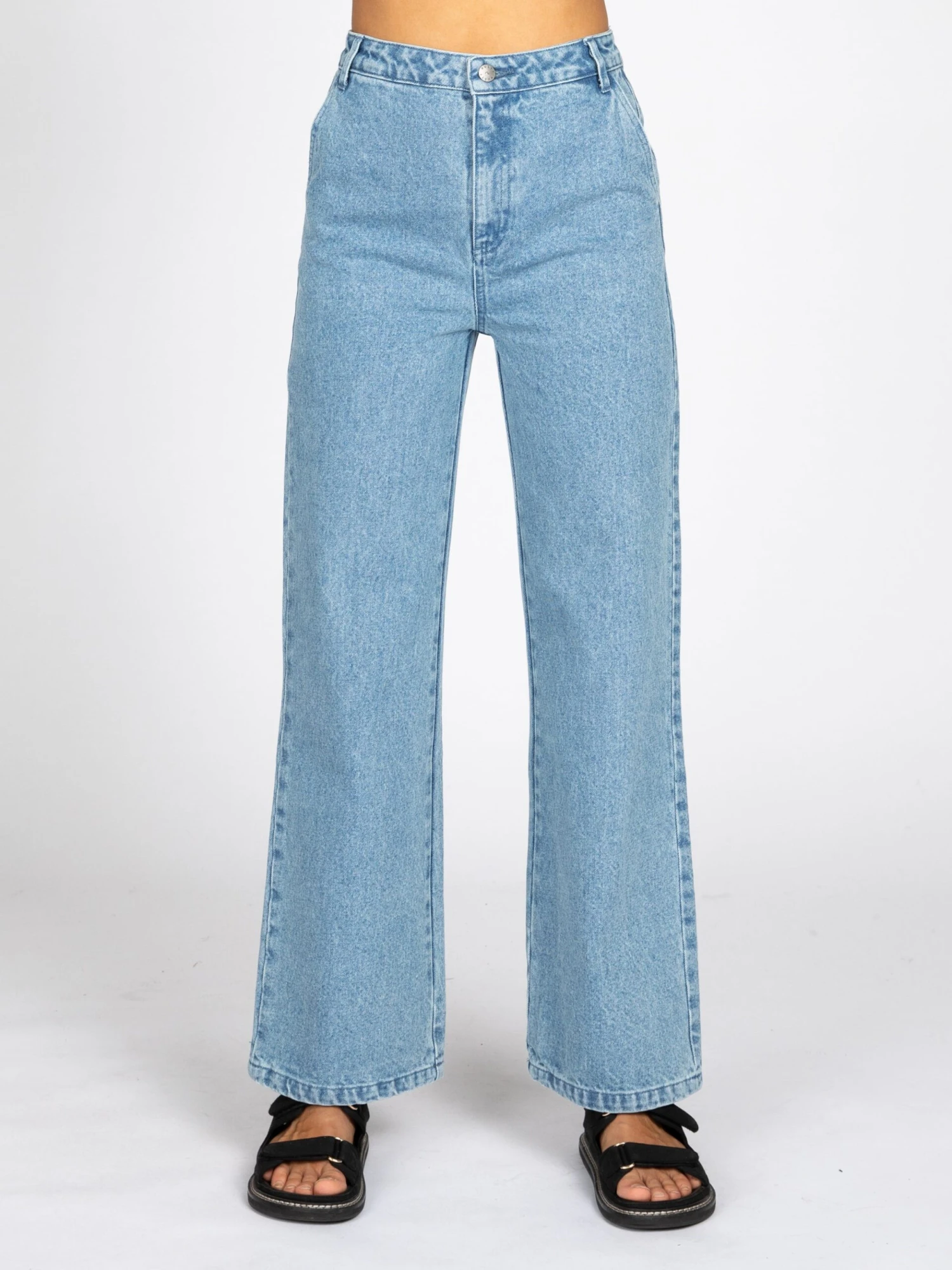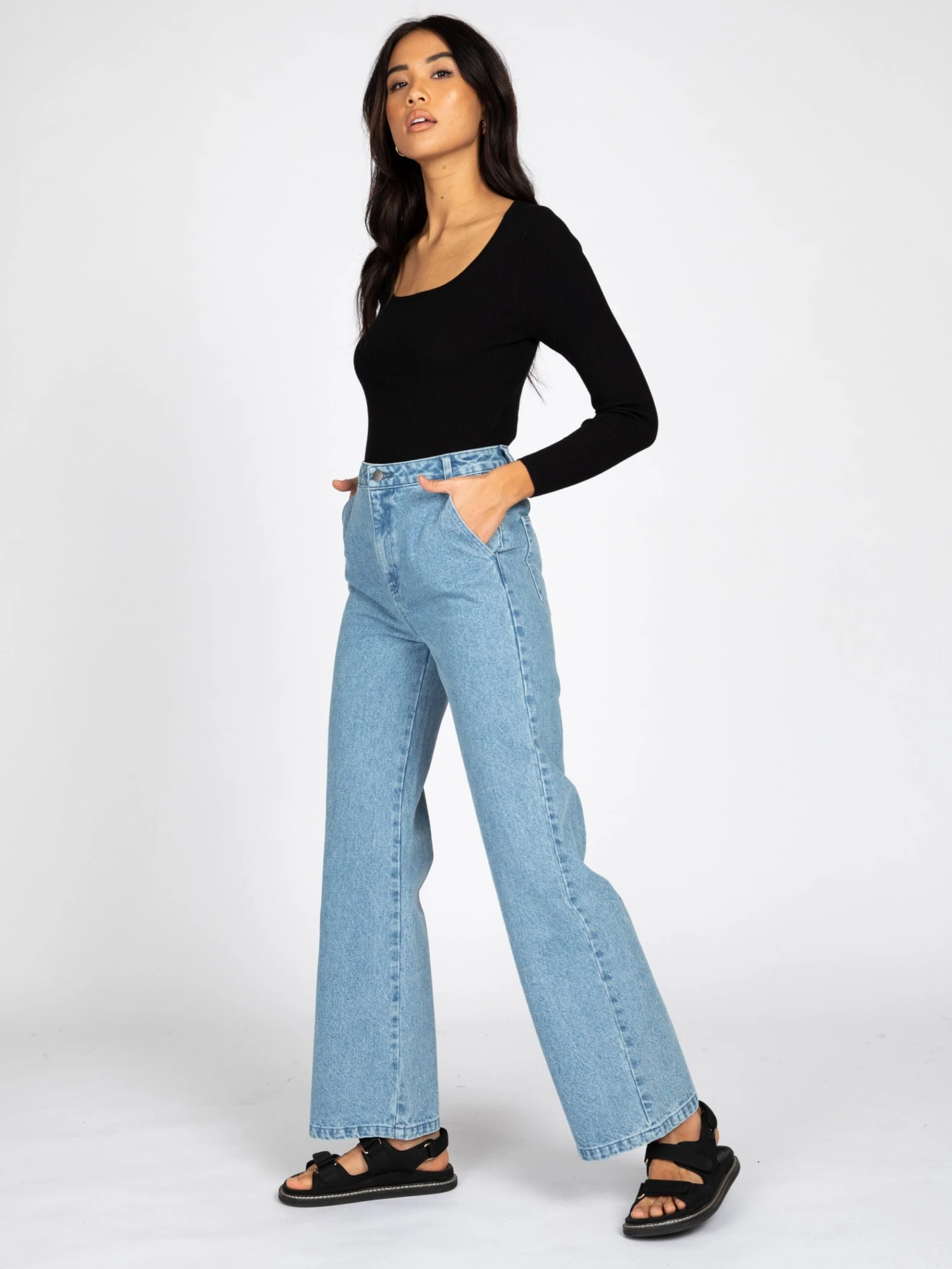 Nail the 70’s vintage vibe in the Cameron High Waist Flare Jean. These high rise flare jeans feature front and back pockets, a wide leg design and are made from 100% cotton rigid denim.
