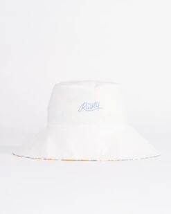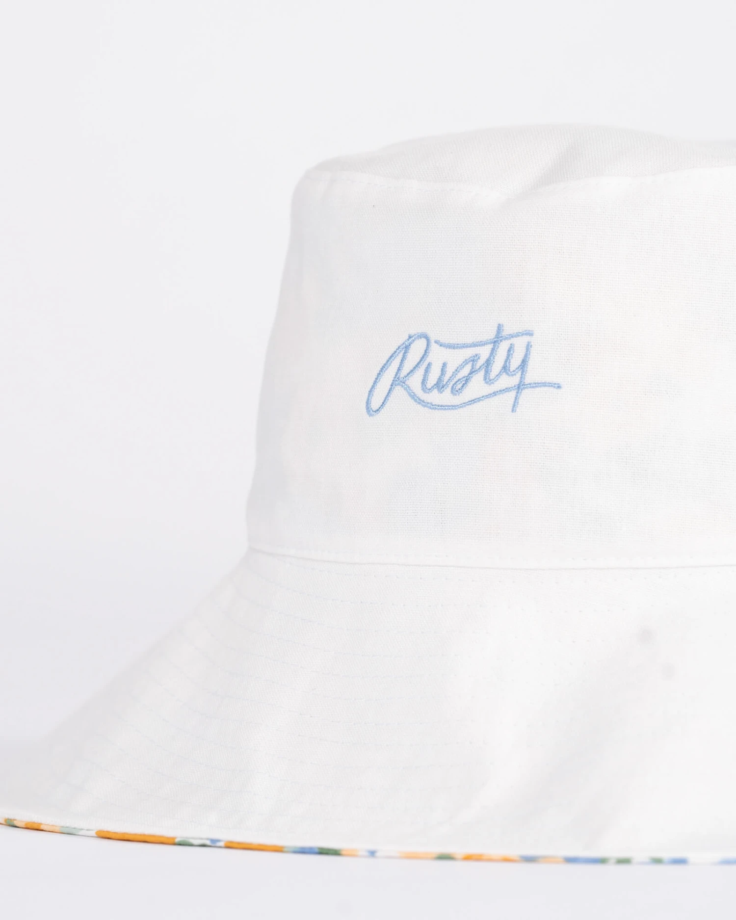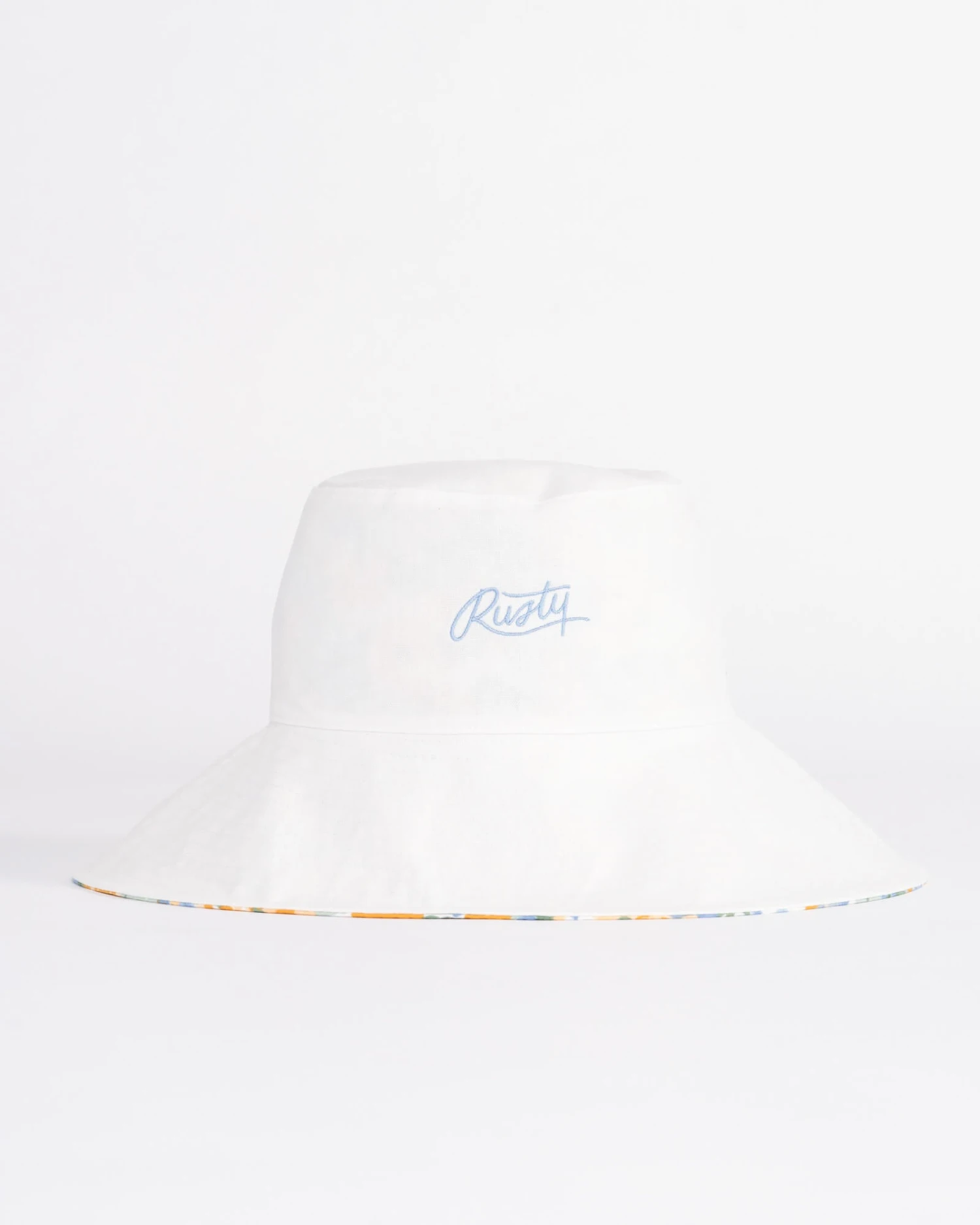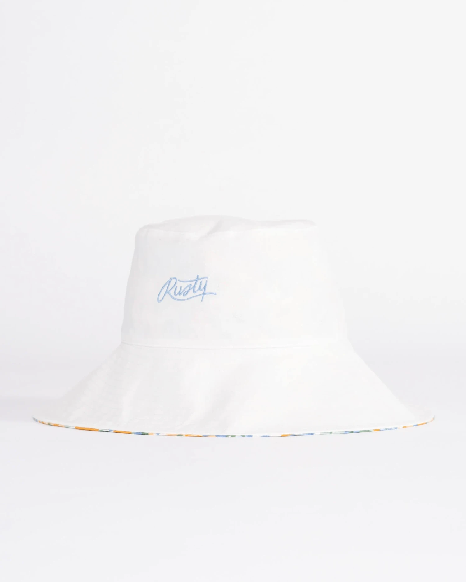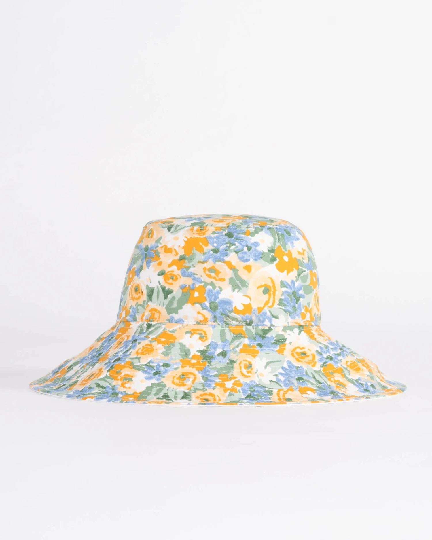 Two hats in one, with the beautiful blue and yellow floral print on one side and a staple white with blue embroidered logo stitched on the other side. The Flora Reversible Bucket Hat offers a wider brim style for more protection.