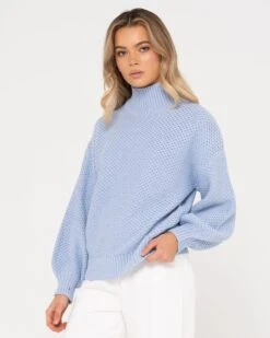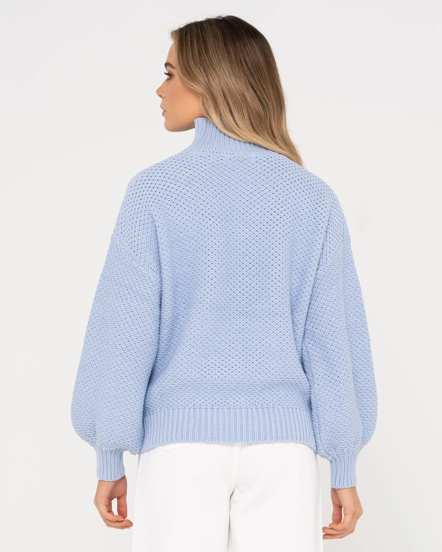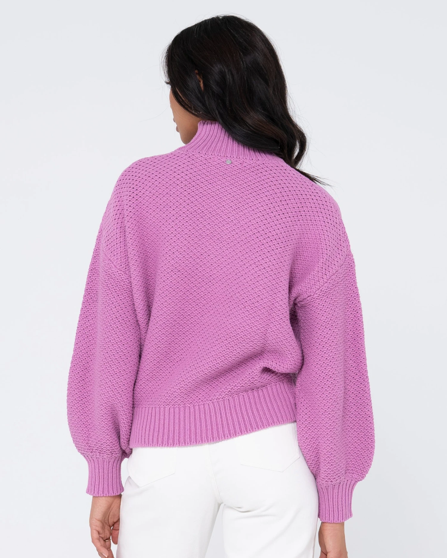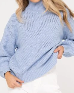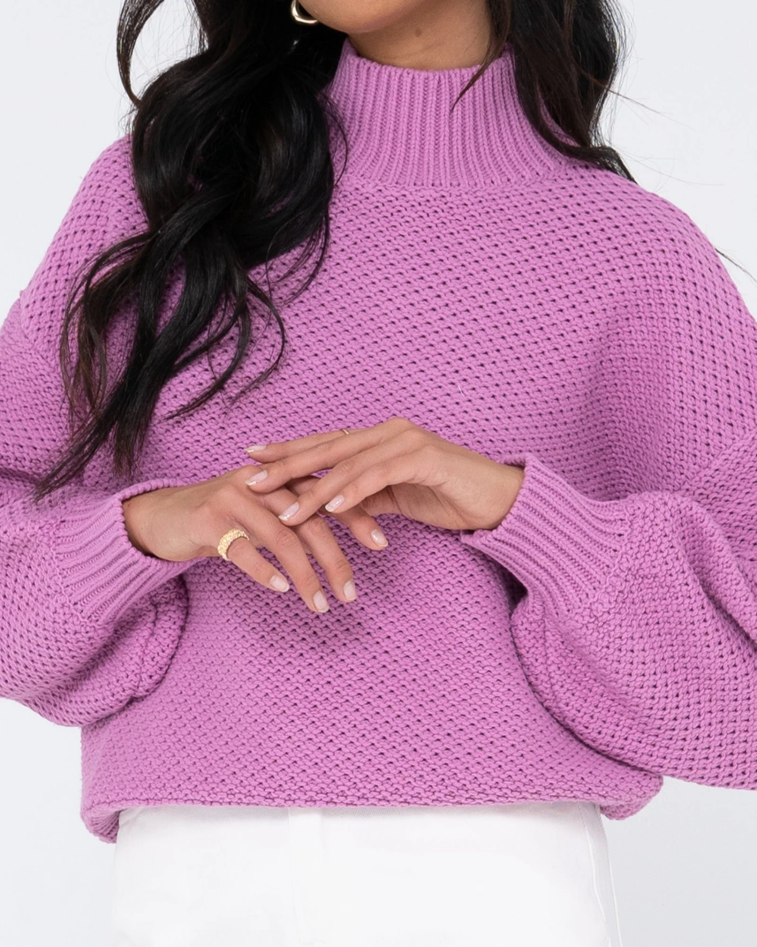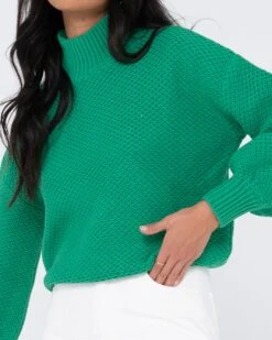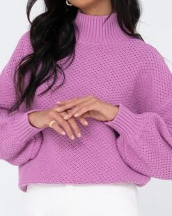 Chunky Relaxed Fit Mock Neck Knit . Material: Cotton Acrylic Yarn 60% Cotton 40% Acrylic