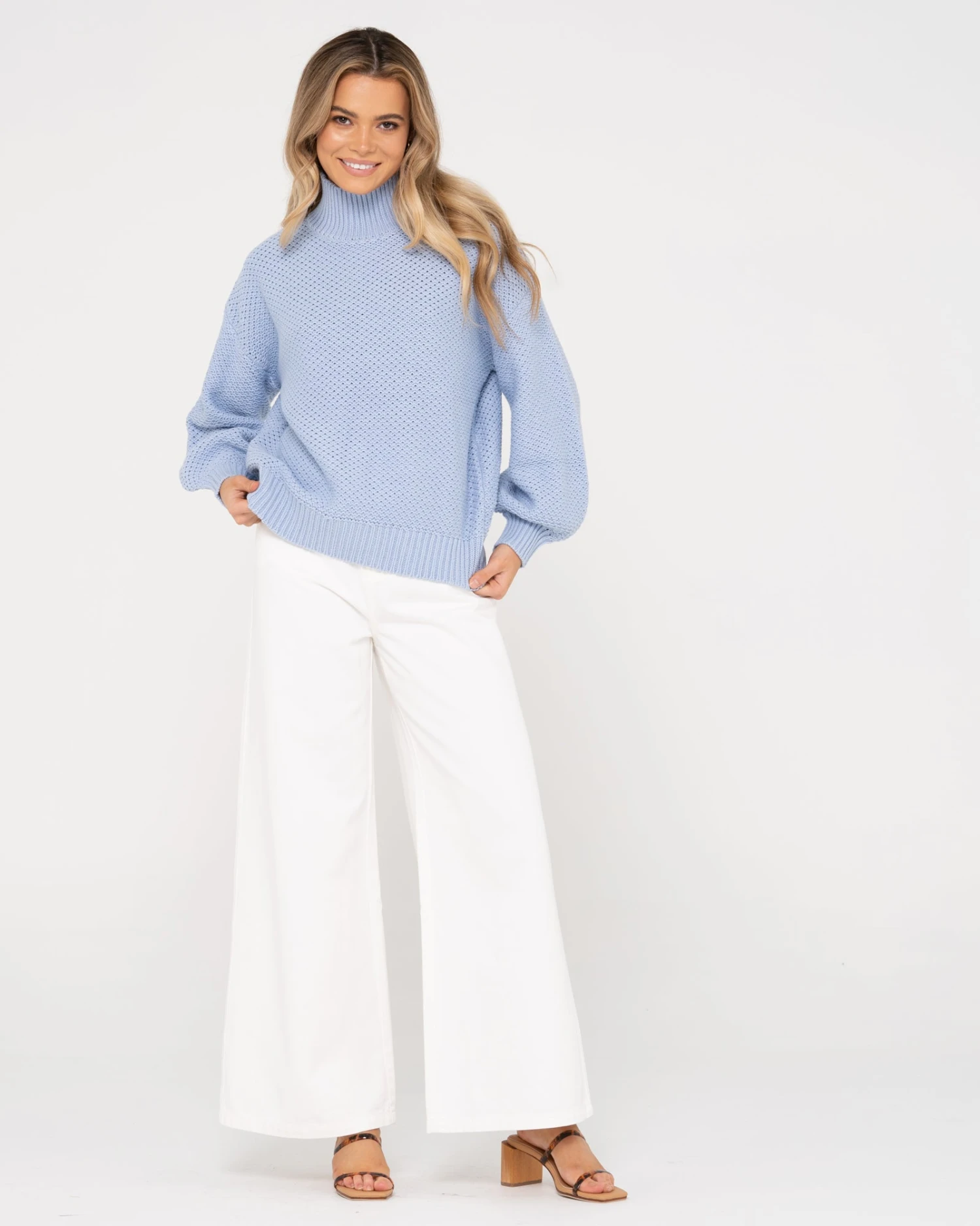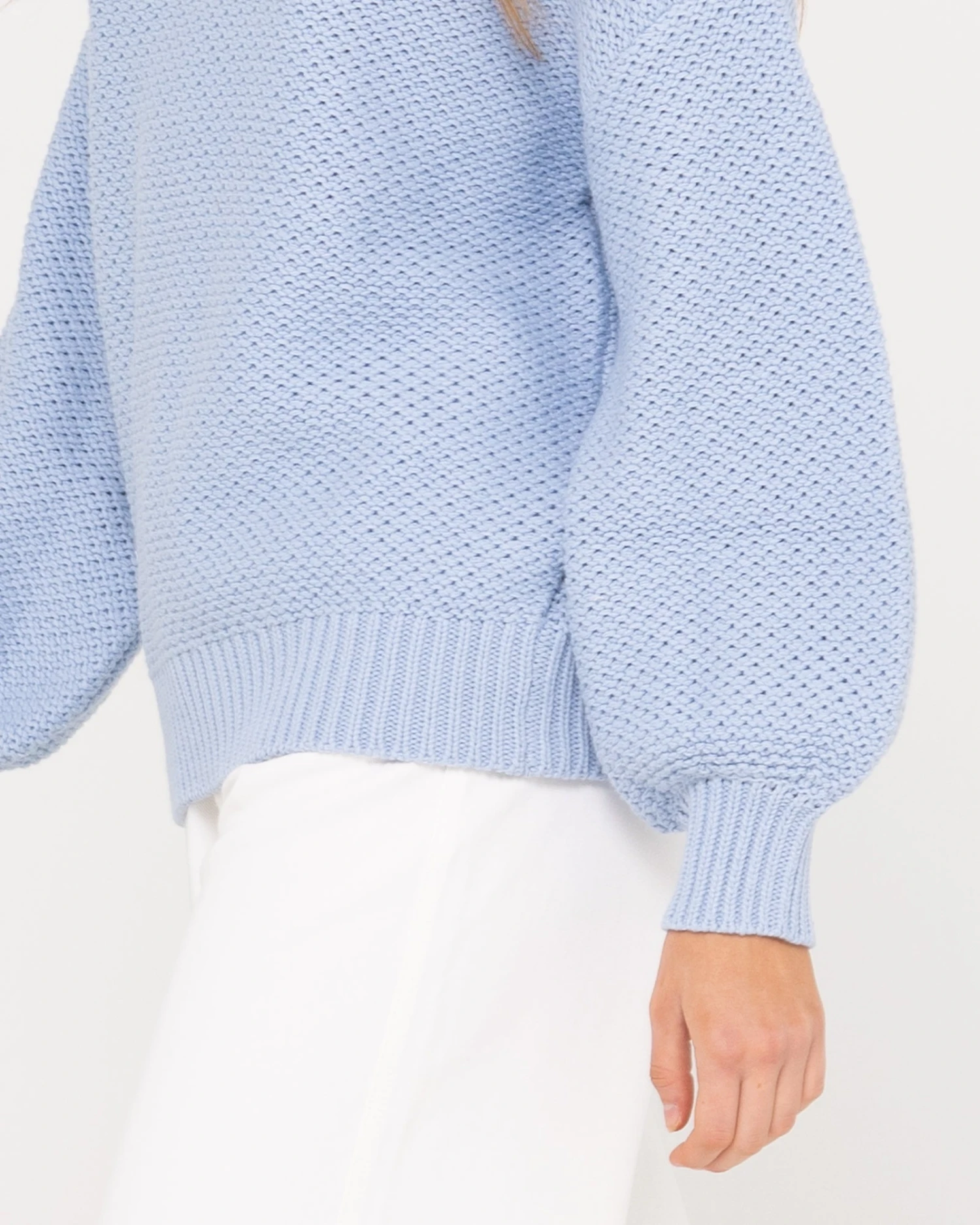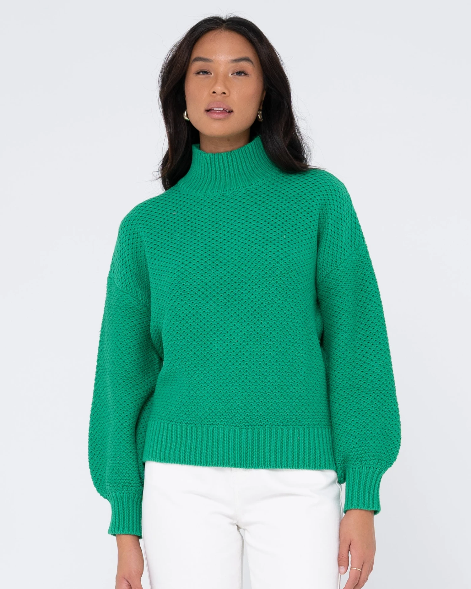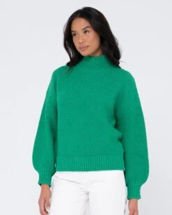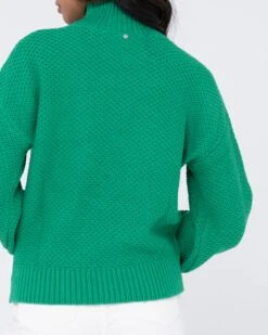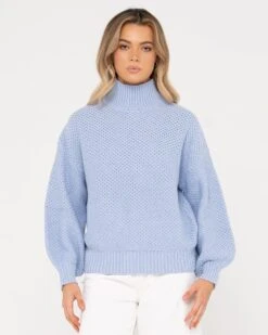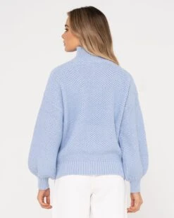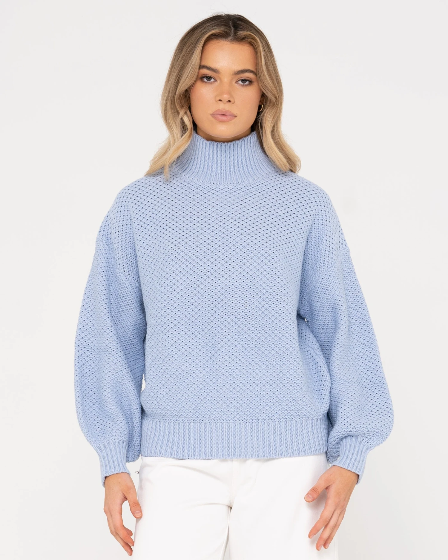 Chunky Relaxed Fit Mock Neck Knit . Material: Cotton Acrylic Yarn 60% Cotton 40% Acrylic
