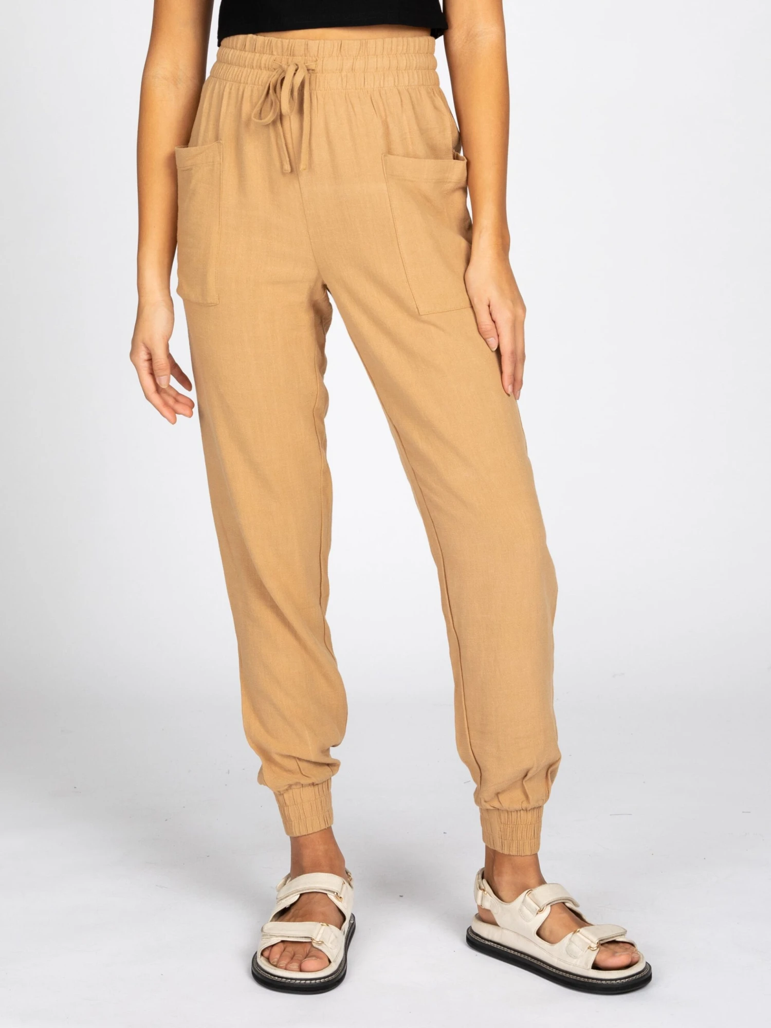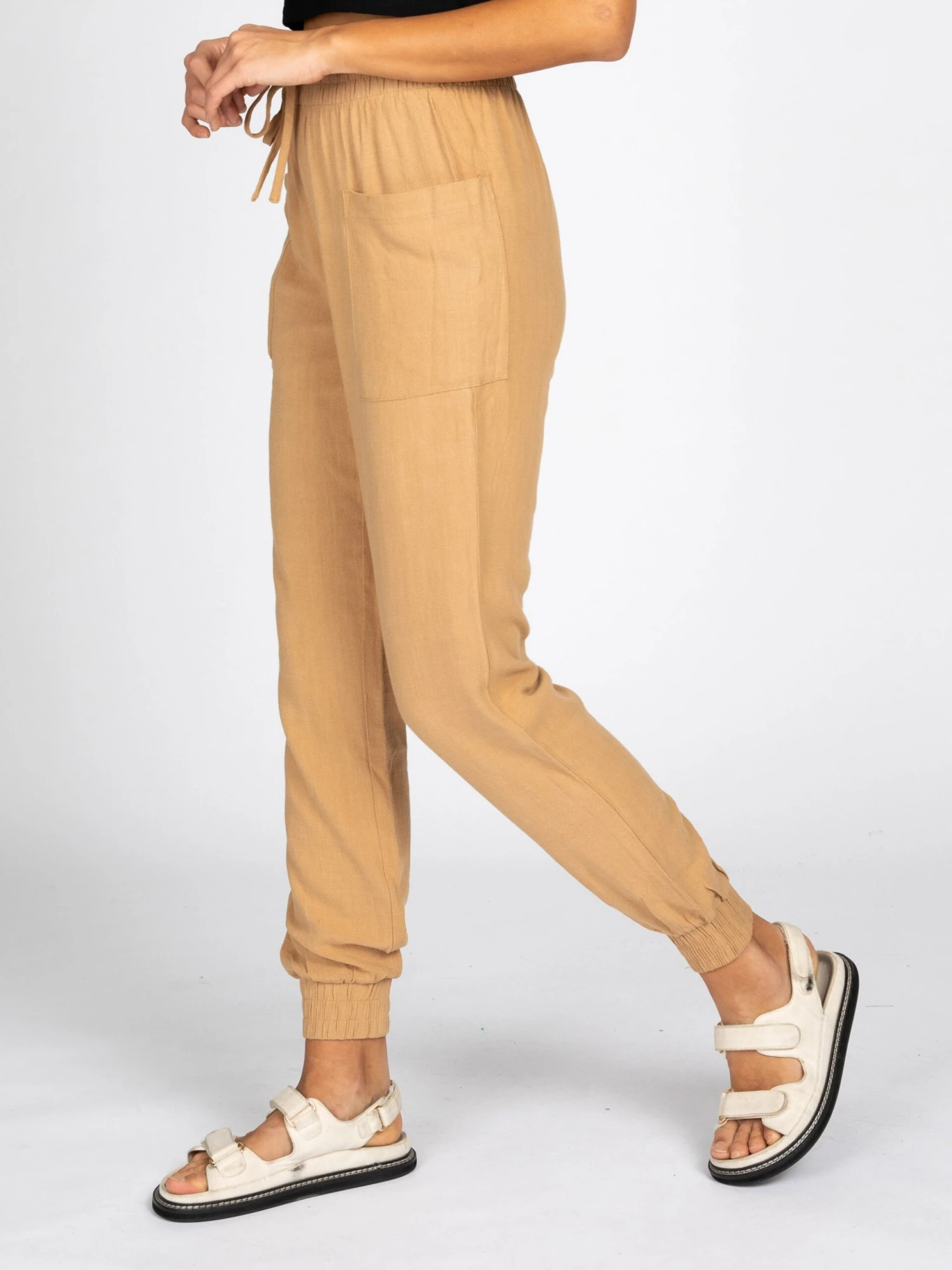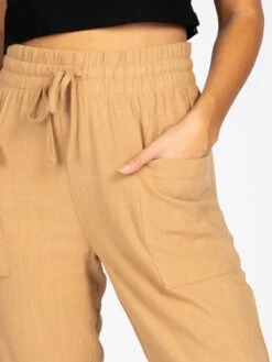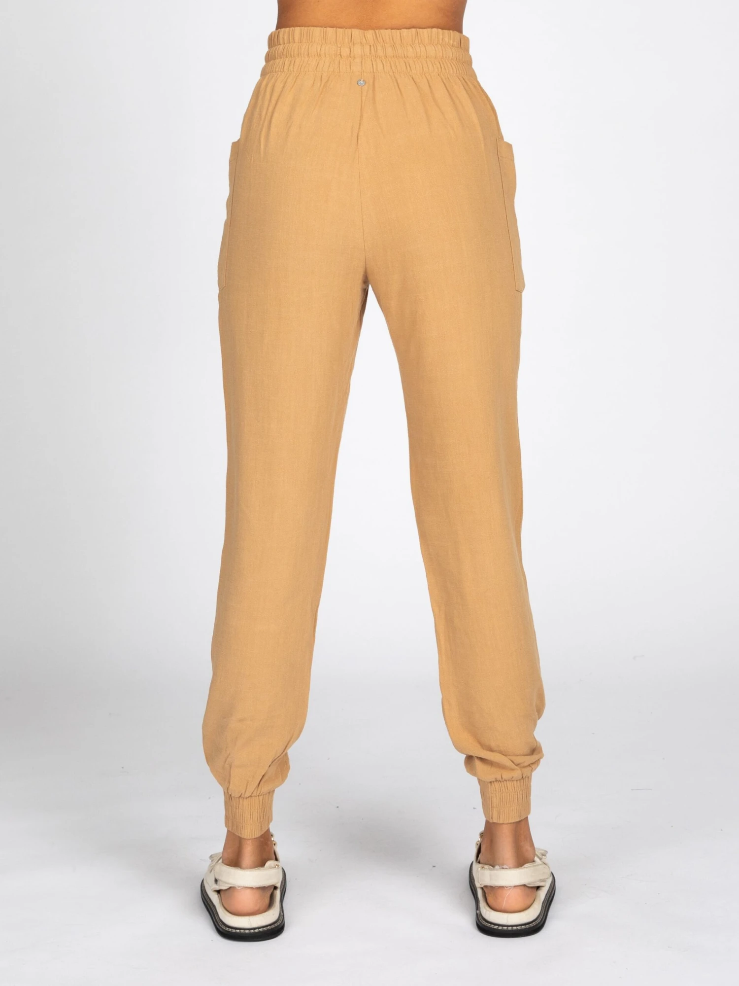 For those cooler spring days grab the Mura Pant. These relaxed fit lounge style pants feature an elastic waist with tie feature and side pockets. The Linen Viscose Blend is planet friendly, breathable and super comfy.