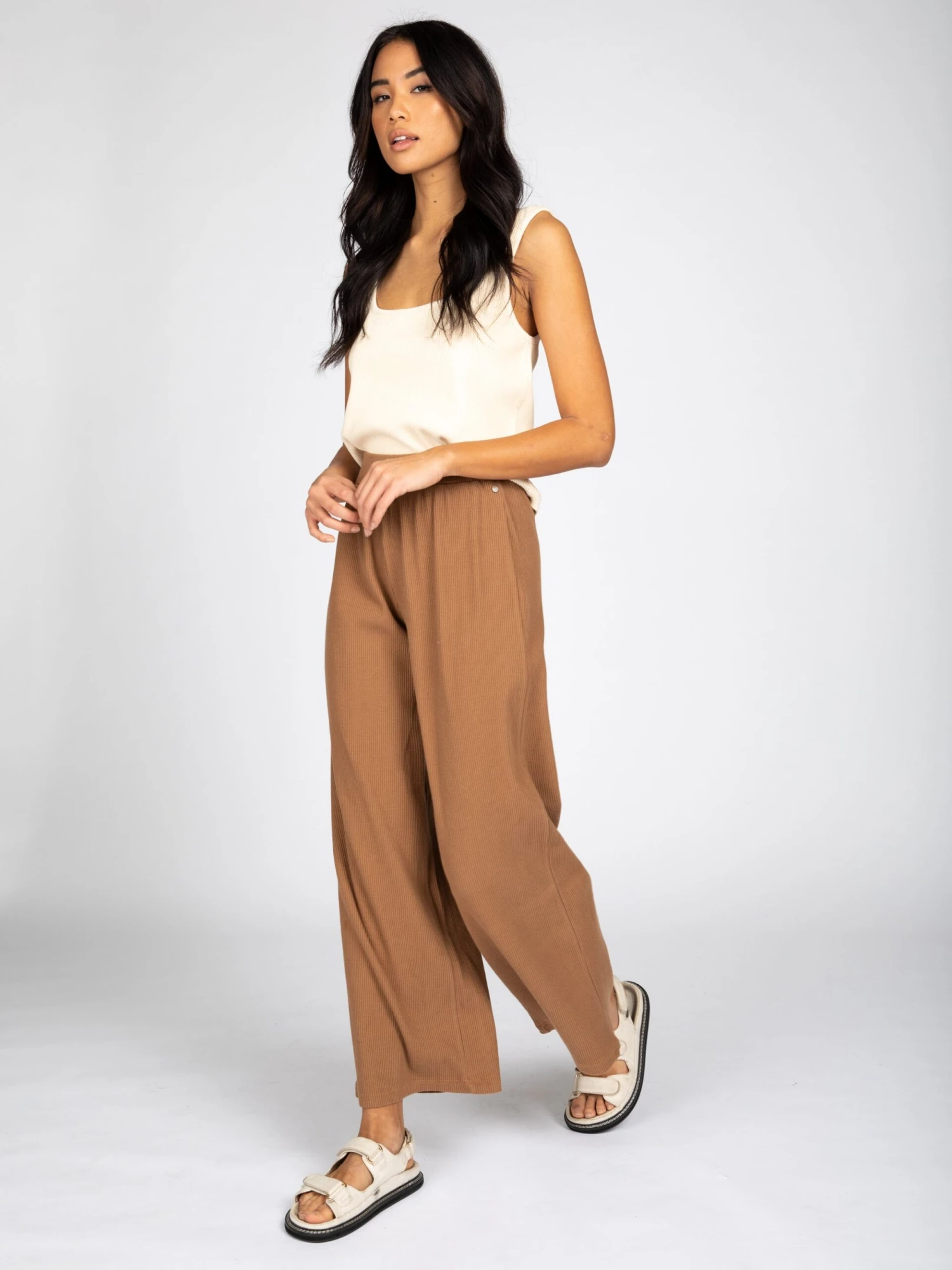 Perfect for lazy weekend mornings and brunches with the gals. The Pacific Lounge Pant combine comfy and cute with their wide leg style, elasticated waist and soft ribbed jersey fabric. Pair this with your fave crop for an easy outfit or wear it with our Pacific Lounge Tank for the ultimate loungewear vibe. Material: Rayon Blend Ribbed Jersey