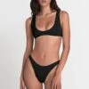 We love high waisted everything! A flattering fit with midi coverage which looks amazing paired with our underwire bra style bikini tops in the Sandalwood range. Find tops in the same colour in the Sandalwood Balconette Tie Top and the Slick Triangle Top. Featuring a small waist band to secure you.