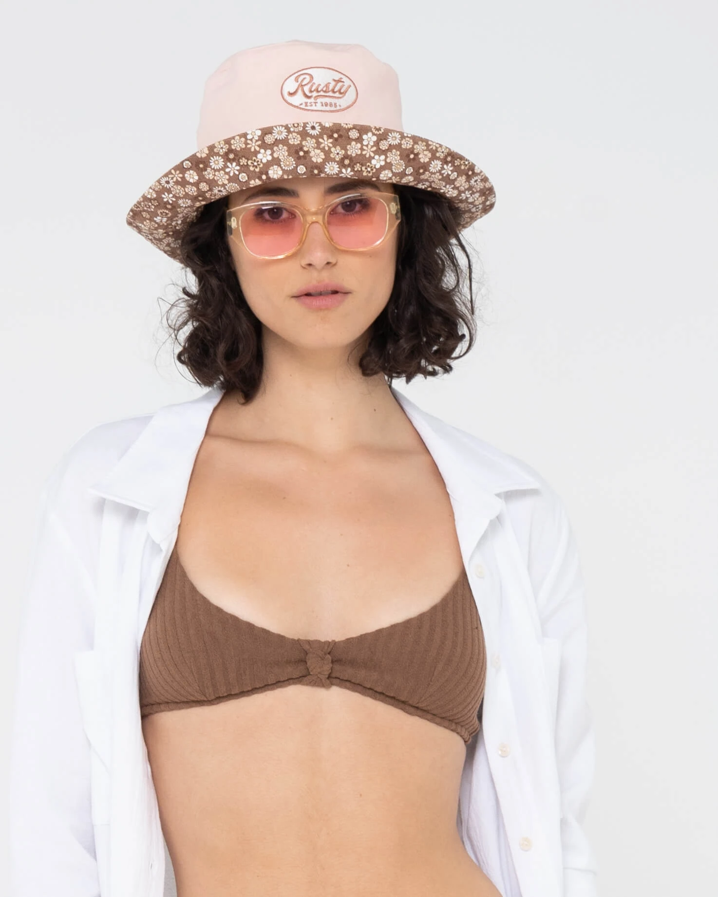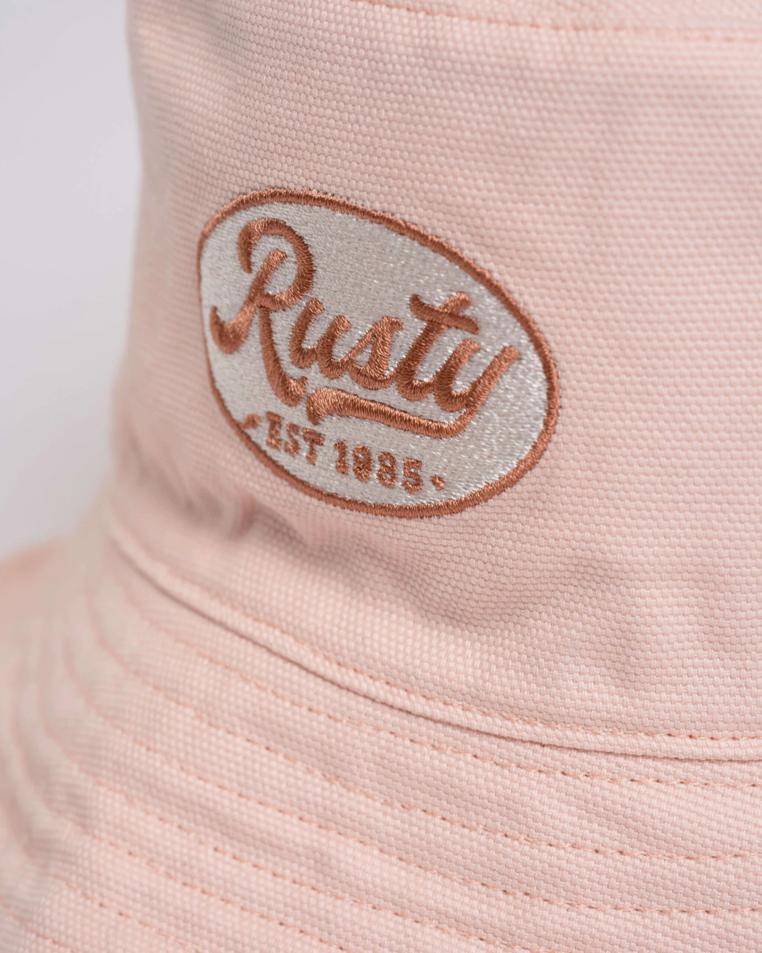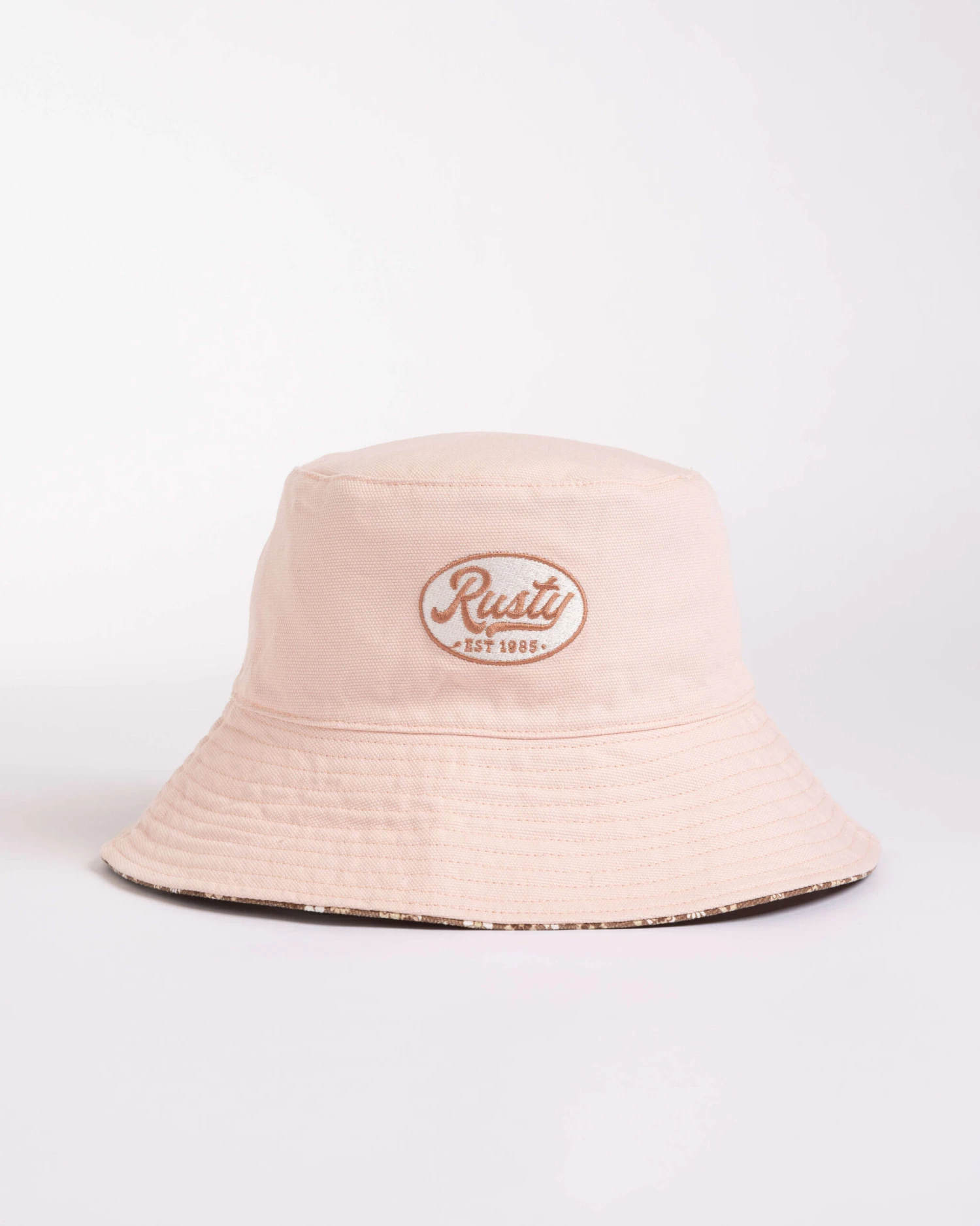 Reversible Bucket Hat With Rusty Embroidery And Custom Print. Material: Cotton Canvas