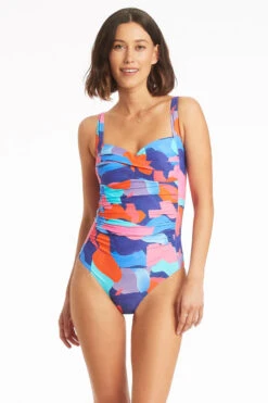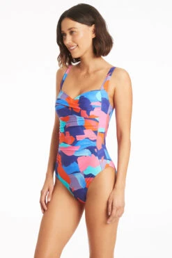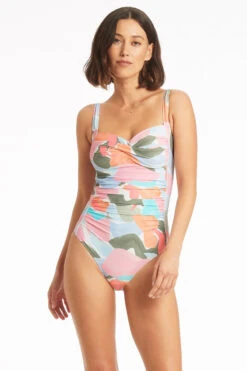 Sea Level Swimwear’s new mood is all about capturing a sense of escapism, it’s a note of joy best summed up by unexpected colours and hand-painted patterns straight from the design studio –Â Sea Level Paintball Twist Front Multifit One Piece is an abstract twist on camouflage feels fresh in refined one-piece suits and asymmetric shapes.