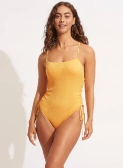 Seafolly Sea Dive Scoop Neck Drawstring Side One Piece