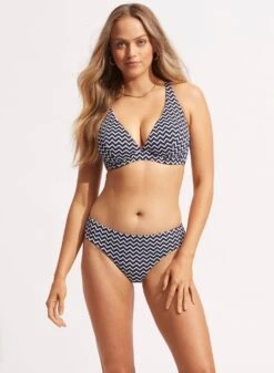 This swimsuit contains a percentage of nylon/elastane which makes it lightweight, stretchy and offers a luxurious fit! Swimwear that contains nylon is a fantastic option for heading to the beach, swimming in the lake or diving into your backyard pool. However, nylon/elastane is not chlorine resistant.