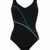 The Sunmarin Women’s Piped Chlorine Proof One Piece Swimsuit features a removable soft cups and a comfortable low back cut.