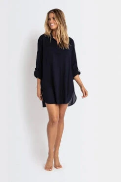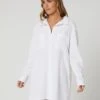 Our classic painters shirt is the perfect easy throw-over for the beach, by the pool, or even at home during summer! With a comfy generous fit and side splits, this shirt will keep you cool all day long. Features long roll sleeves for sun coverage and side pocket detail. 100% cotton.