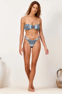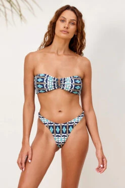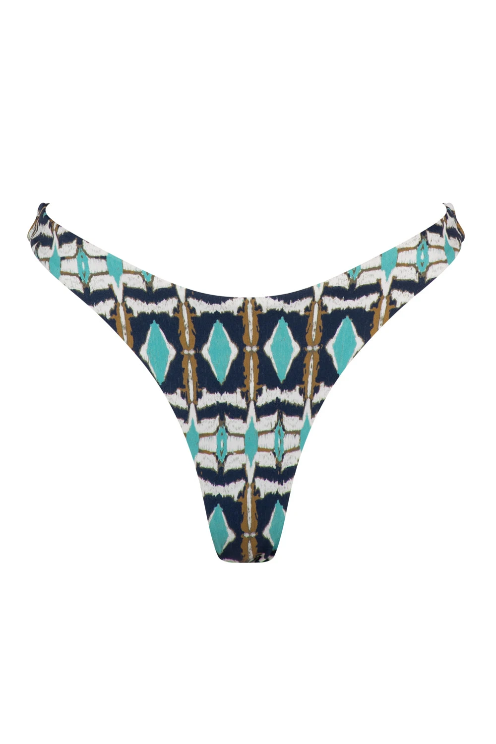 Inspired by traditional Ikat weaving, Kiriana embodies our love for the ocean with it’s rich blues and greens. From tones found in crashing waves to the sandy shores, explore Kiriana in all new reversible swim and dramatic apparel silhouettes. A Tigerlily favourite, the High Elle is our sexy bikini bottom with its striking shape on the body. Featuring our Kiriana print in a high-cut bottom and cheeky back, the High Elle is for the bold and daring.