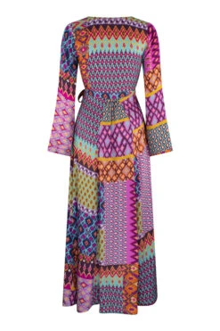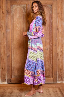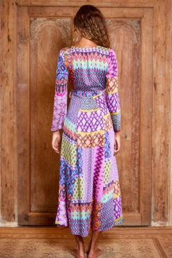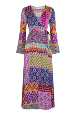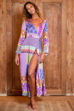 Unearth Utopia. Another standout print is back from the archives. Modernised into new dress silhouettes and playful swimwear pieces, this stunning patchwork-inspired print combines rich jewel tones and majestic block prints. Suri is back! This classic wrap maxi dress style is a Tigerlily favourite, with its slightly flared sleeves and dramatic movement. Featuring a side tie on waist, gathering at back and all-over Utopia patchwork print for an eye-catching dress this season.