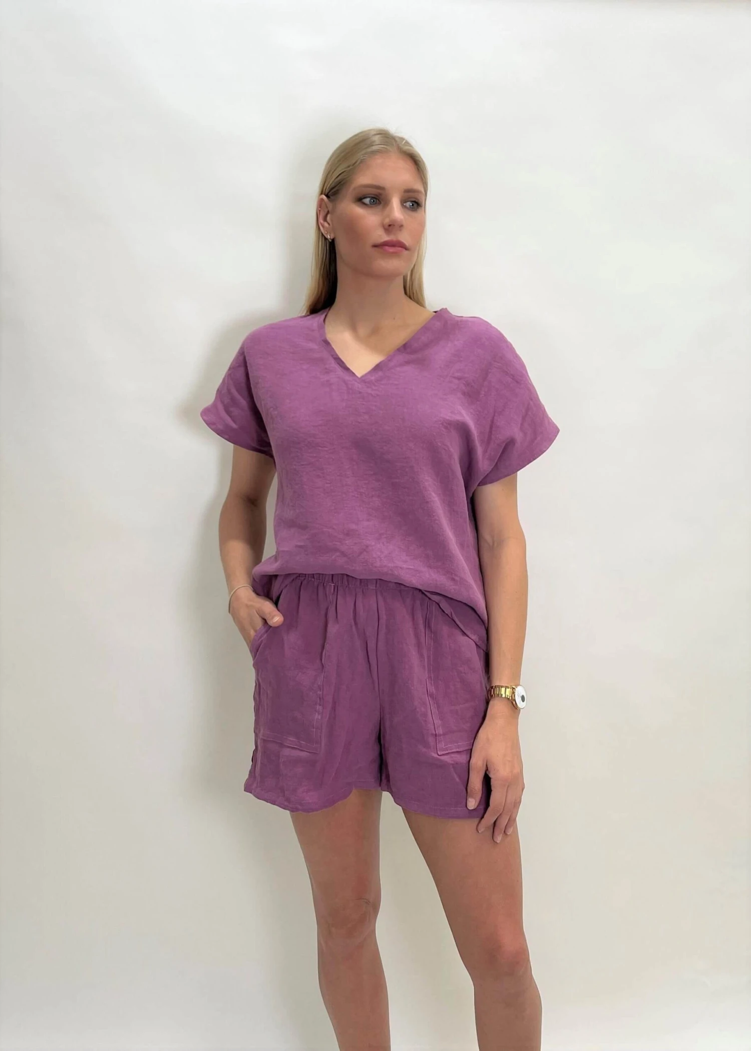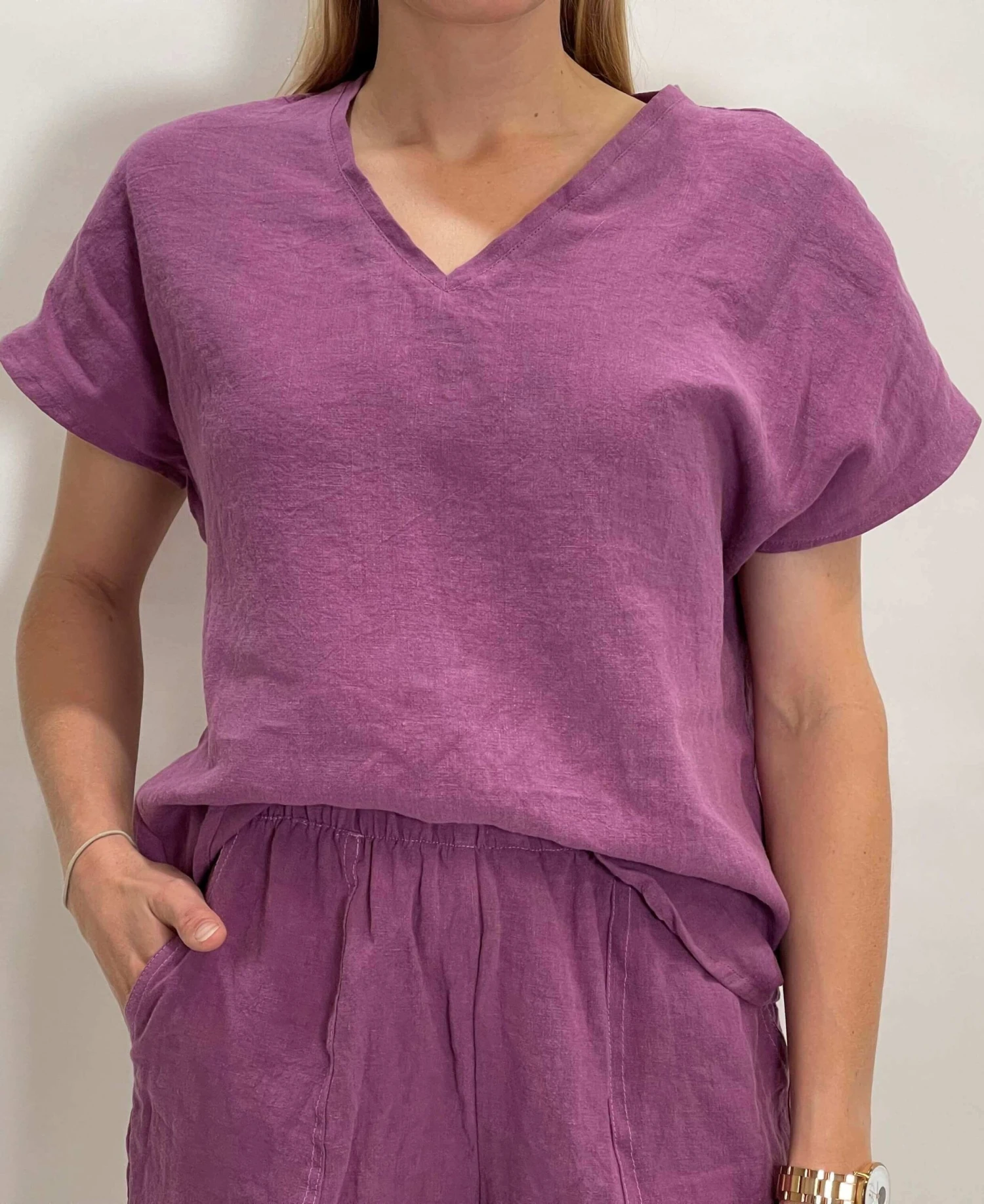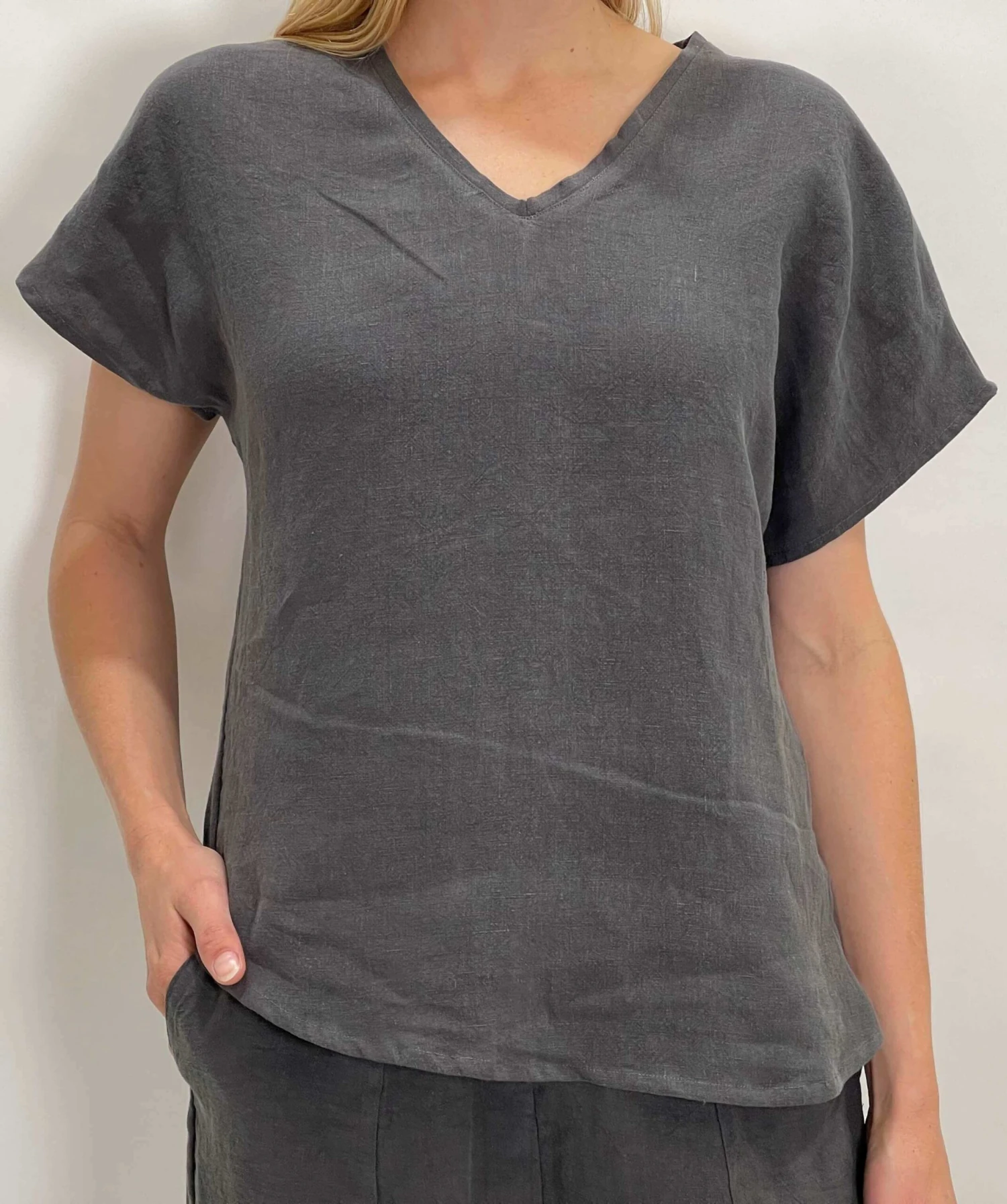 A beautiful European Linen Top perfect for everyday. V-neck collar. This linen becomes softer with every use and designed to last. Made in Australia and Exclusive to Sundaze.