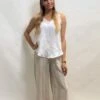 Our Tenille Linen Pant in White is cut from lightweight linen in an airy wide-leg silhouette and has an elasticated wide waistband with a matching drawcord, so you can adjust the fit. Team yours with a linen shirt or top.