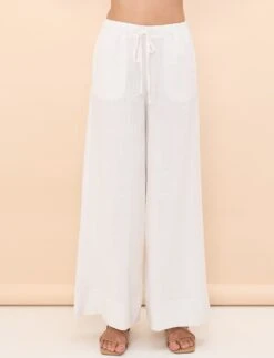 Our Tenille Linen Pant in White is cut from lightweight linen in an airy wide-leg silhouette and has an elasticated wide waistband with a matching drawcord, so you can adjust the fit. Team yours with a linen shirt or top.
