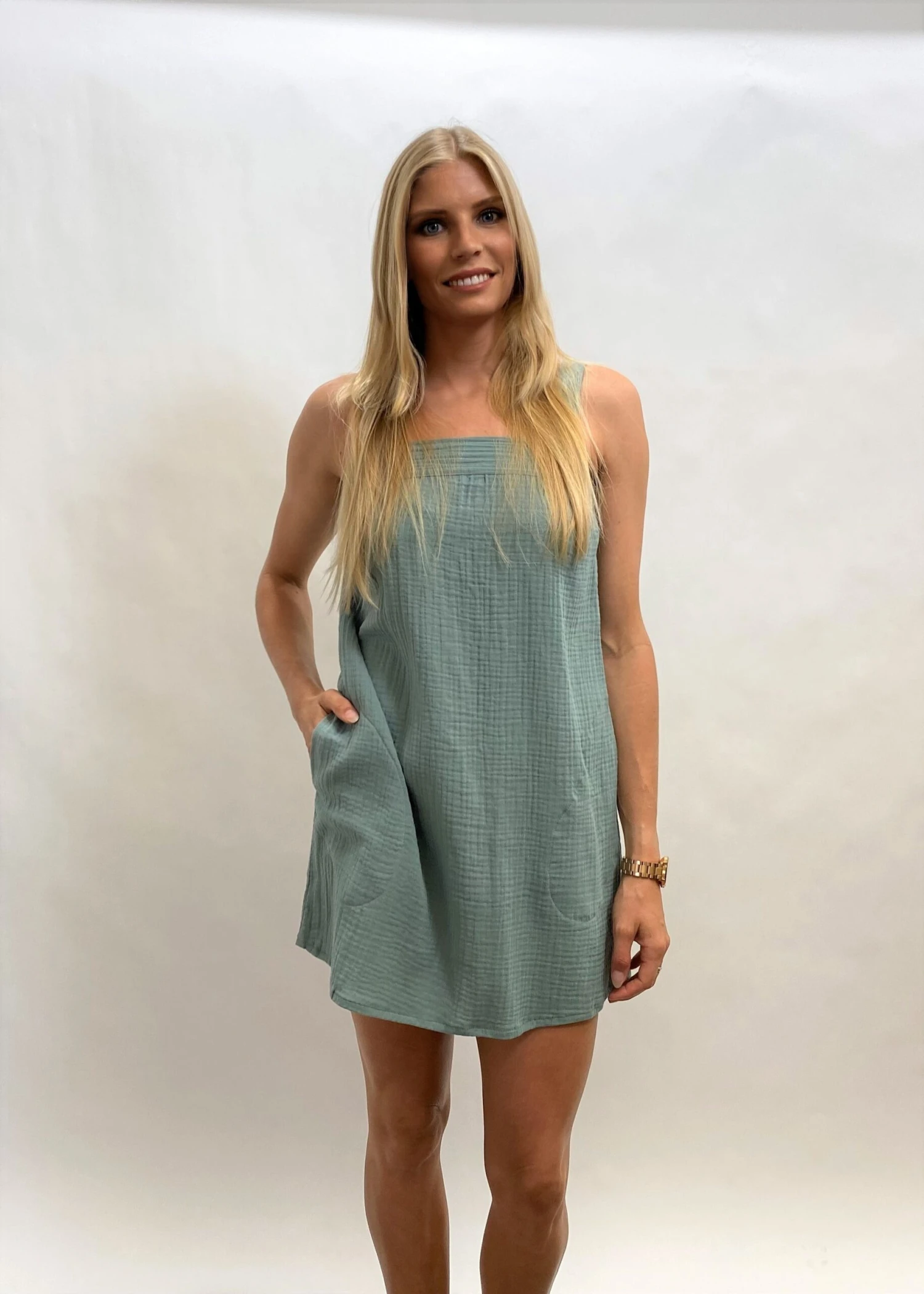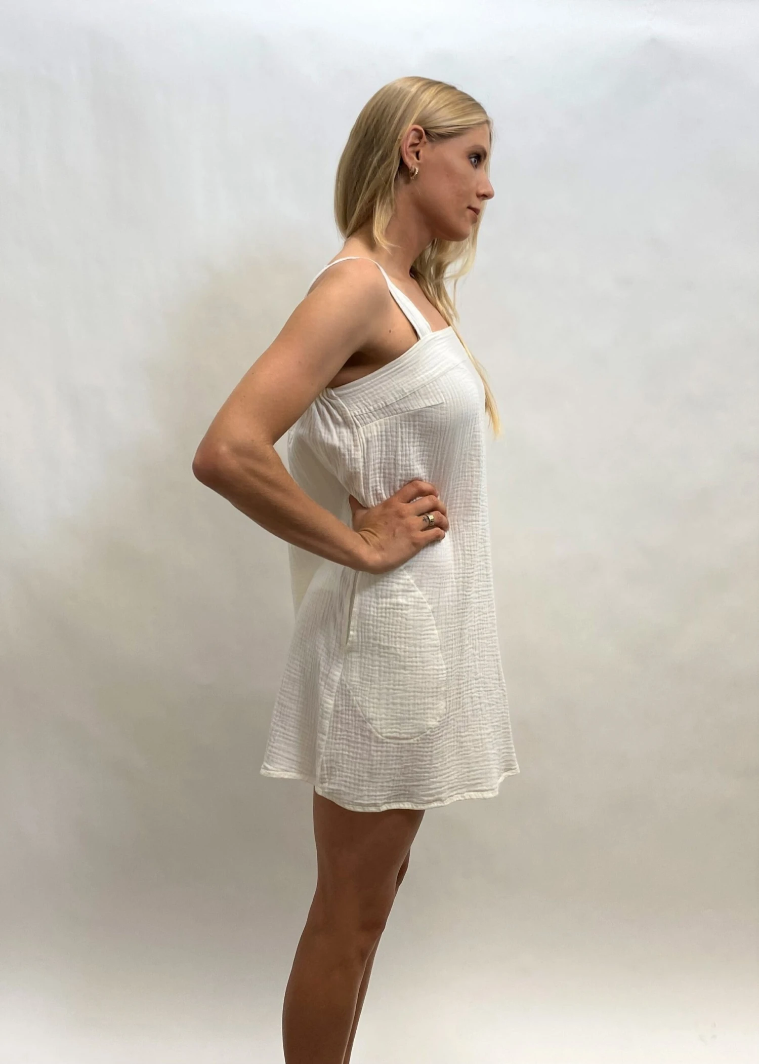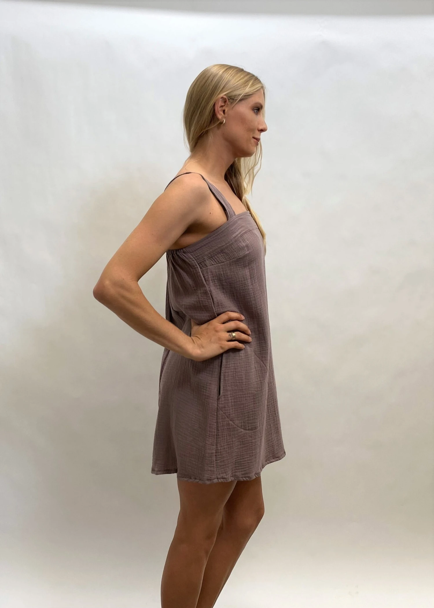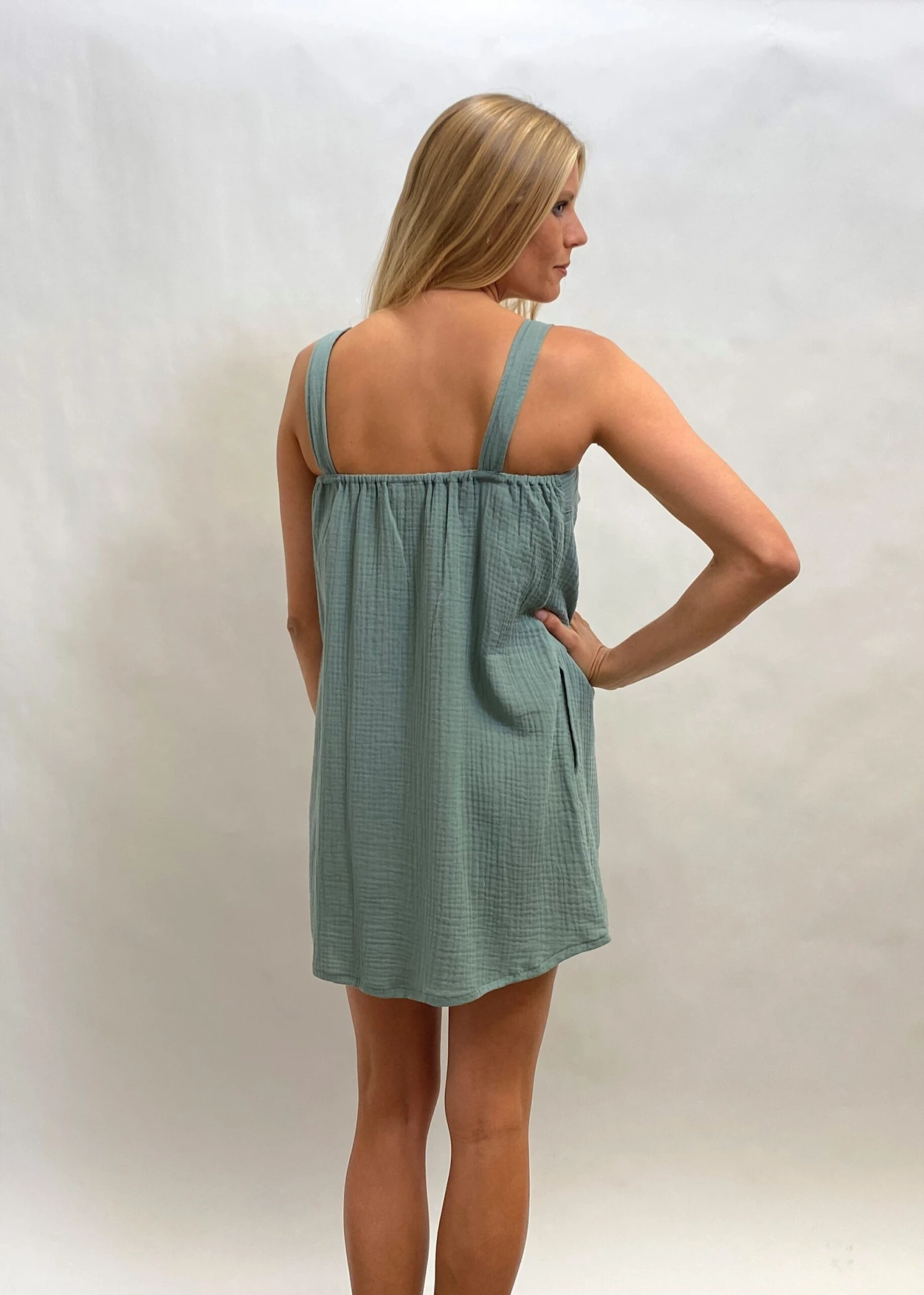 The perfect little square neck dress. We love this super cute and light weight cool and 100% Organic cotton with pockets. Australian made and GOTS ( Global organic textile standard) certified.