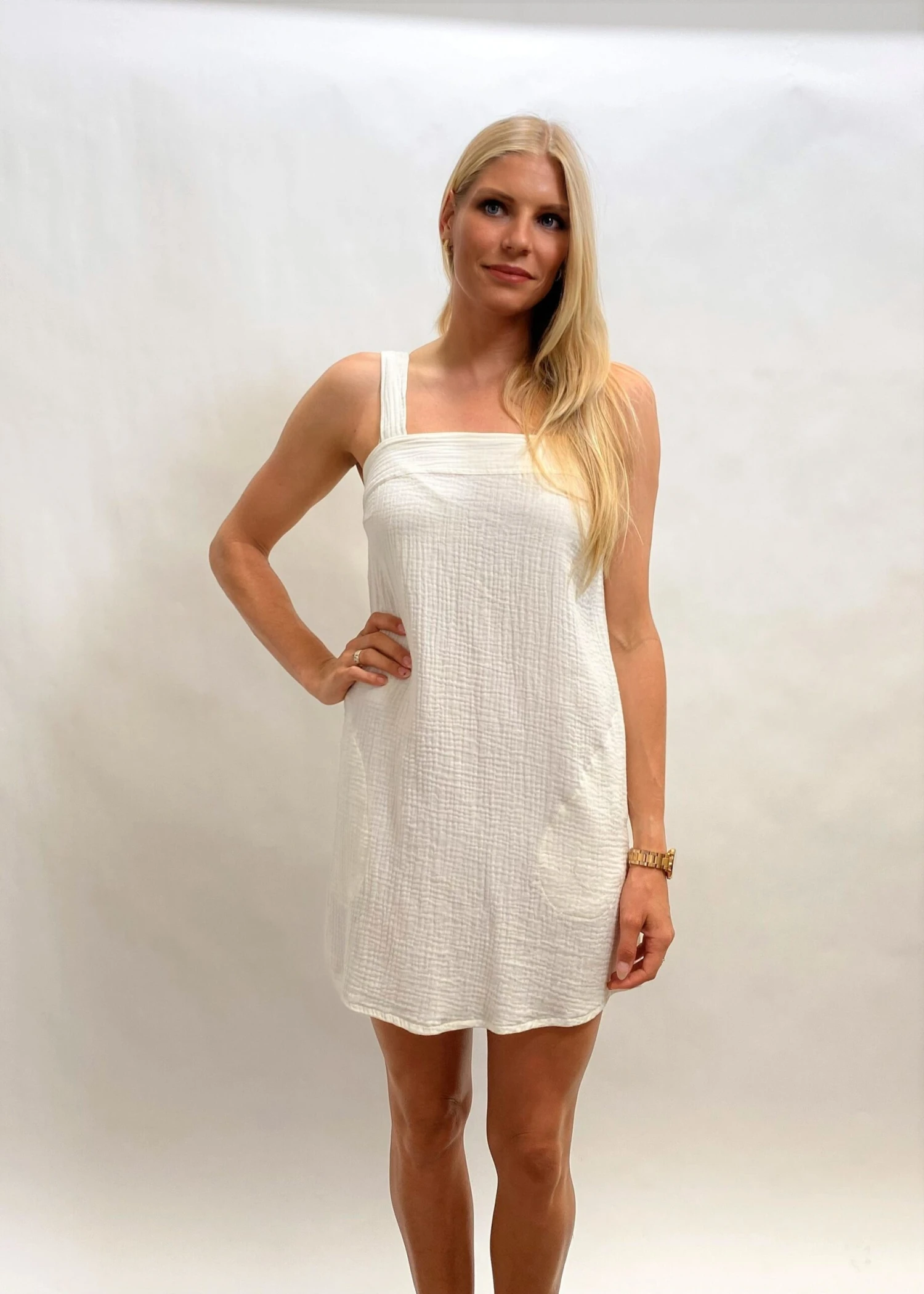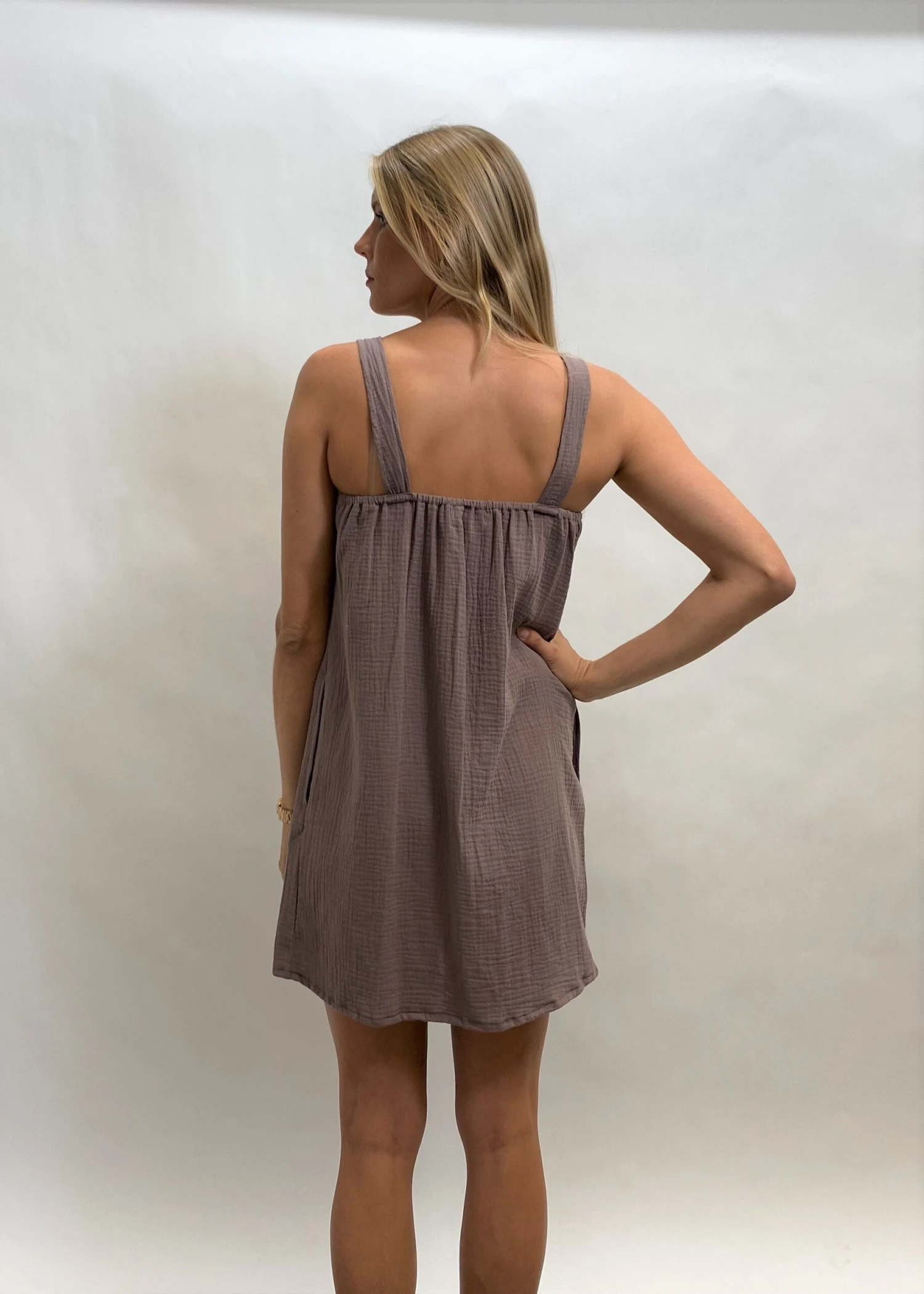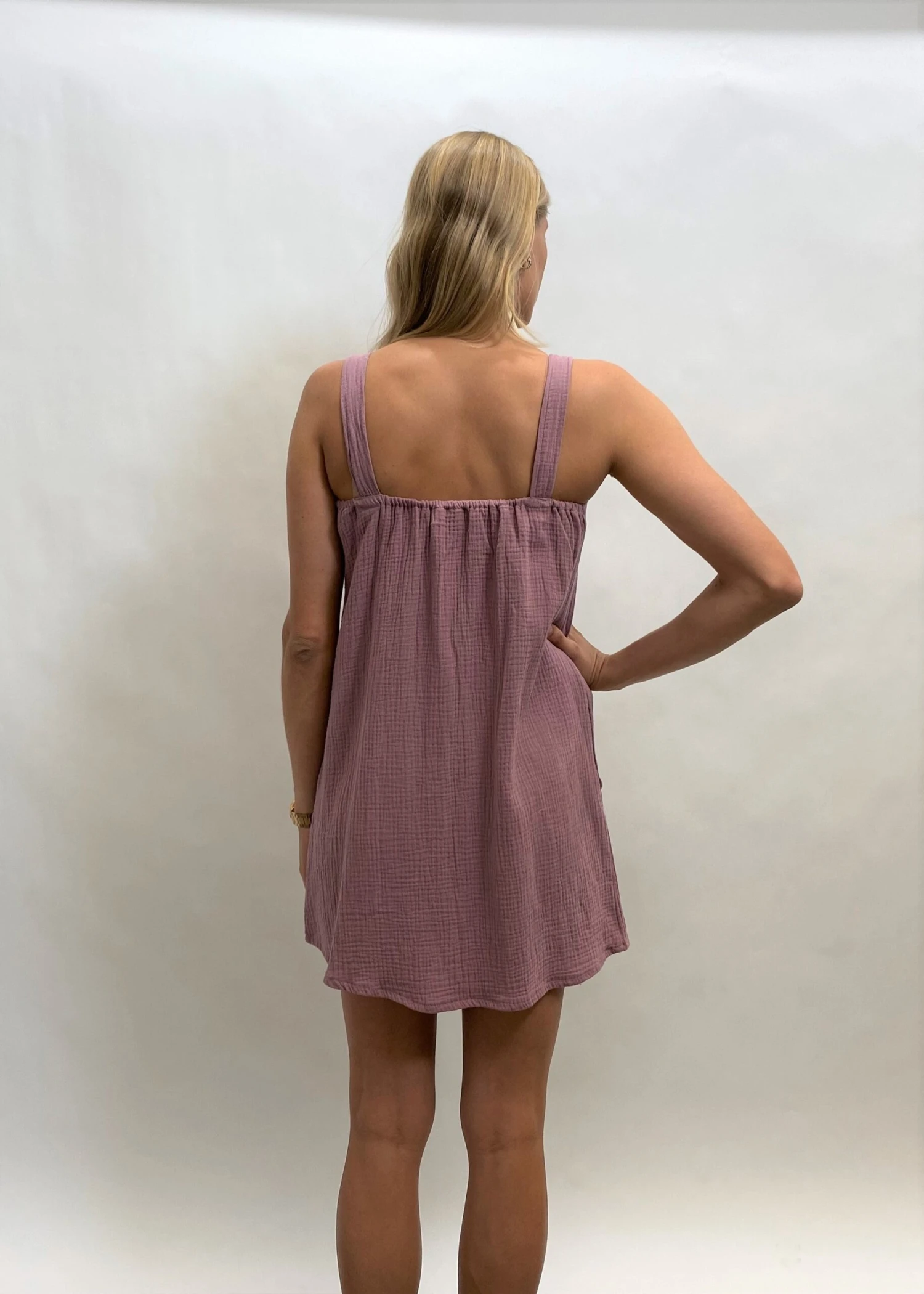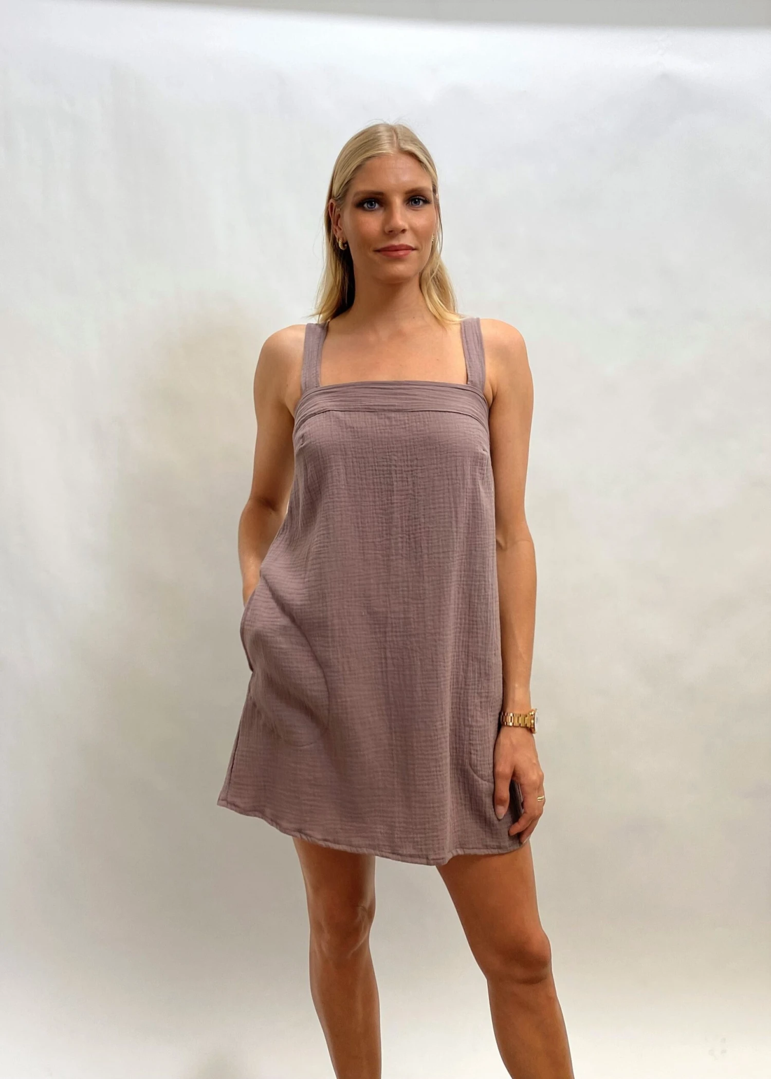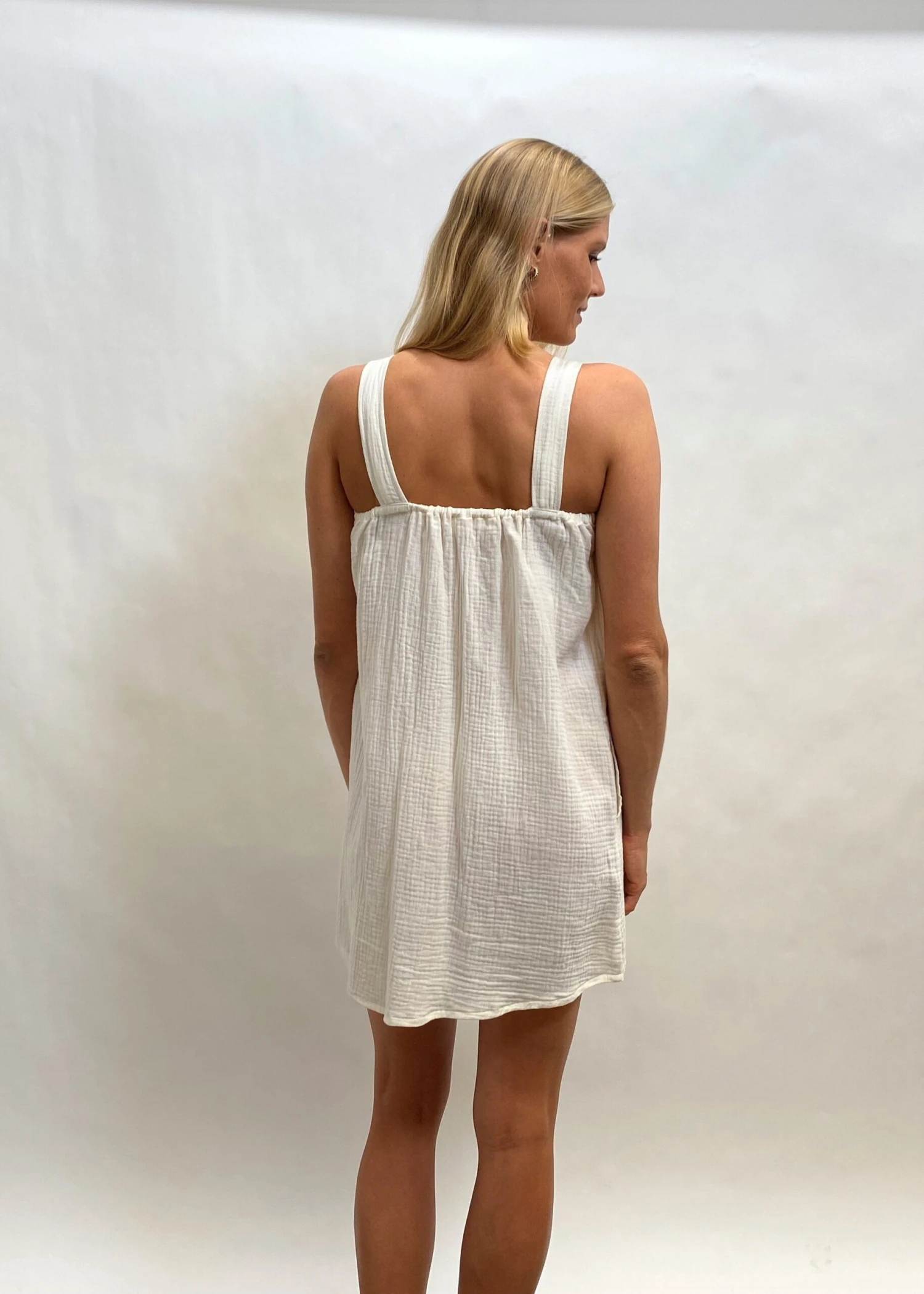 The perfect little square neck dress. We love this super cute and light weight cool and 100% Organic cotton with pockets. Australian made and GOTS ( Global organic textile standard) certified.