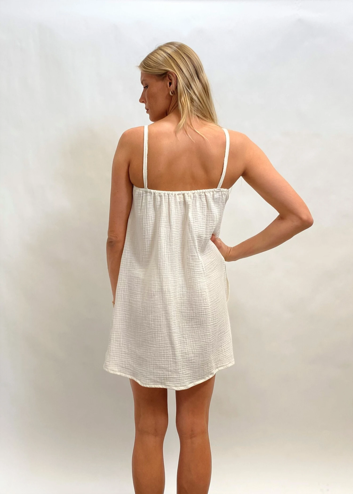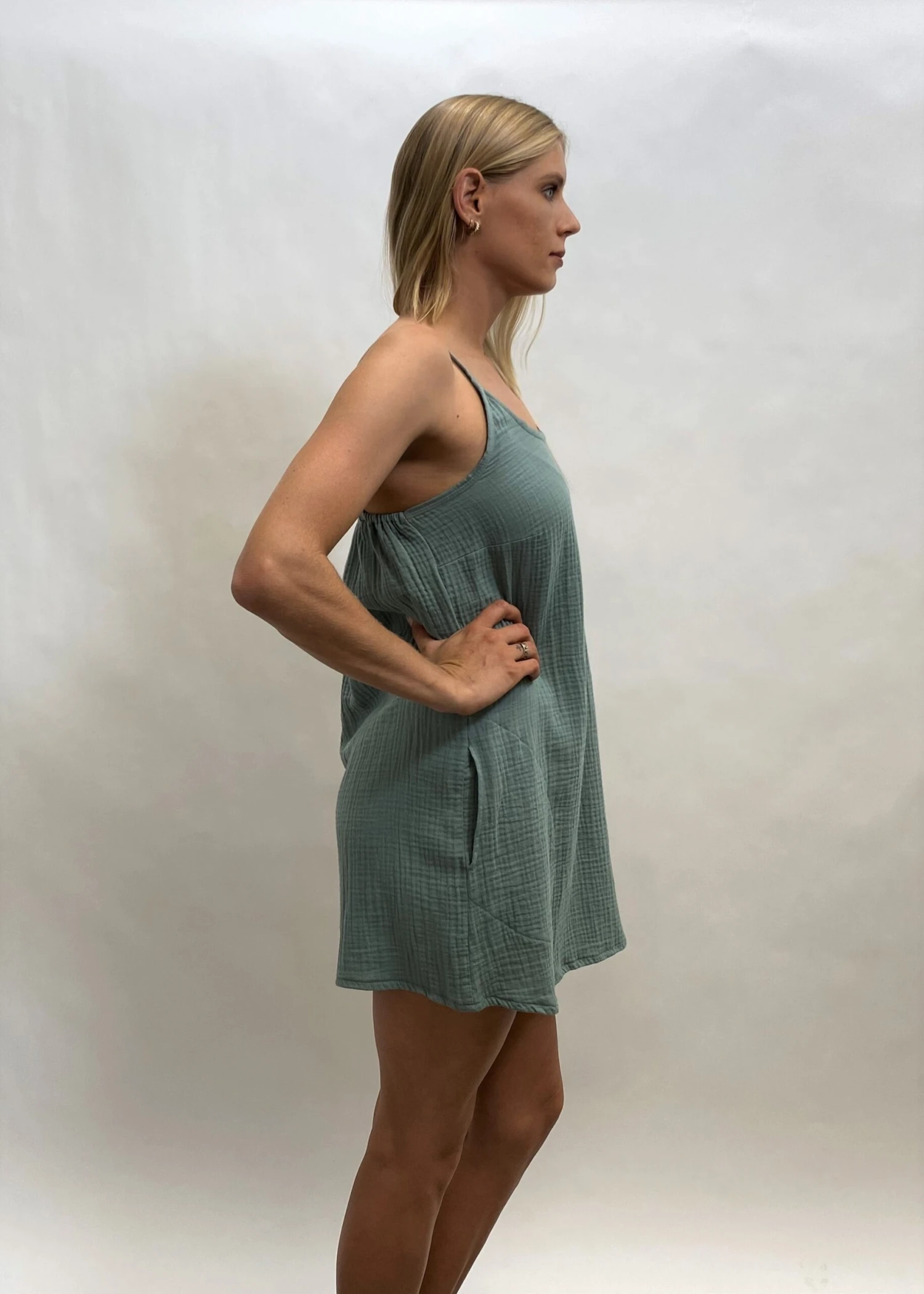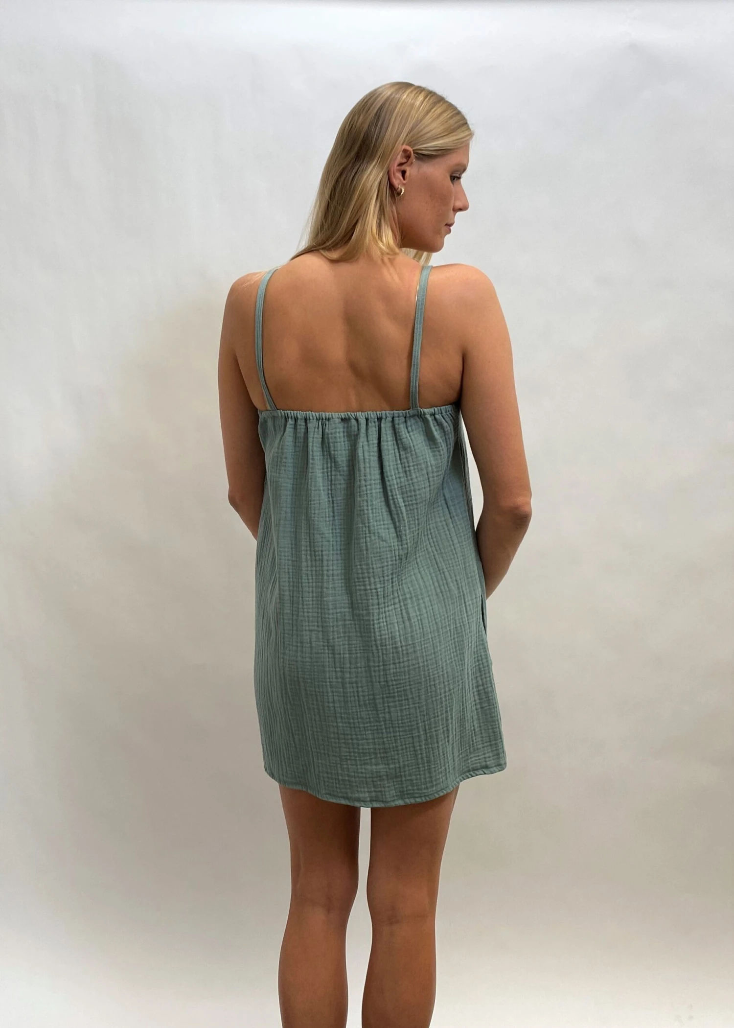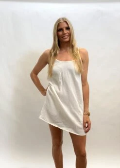 A simple cool beach dress. We love this super cute. Nice light weight cool and 100% Organic cotton. Australian made and GOTS ( Global organic textile standard) certified.