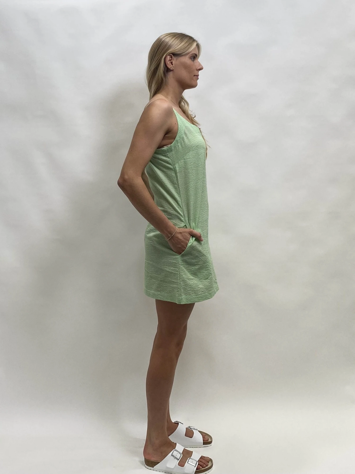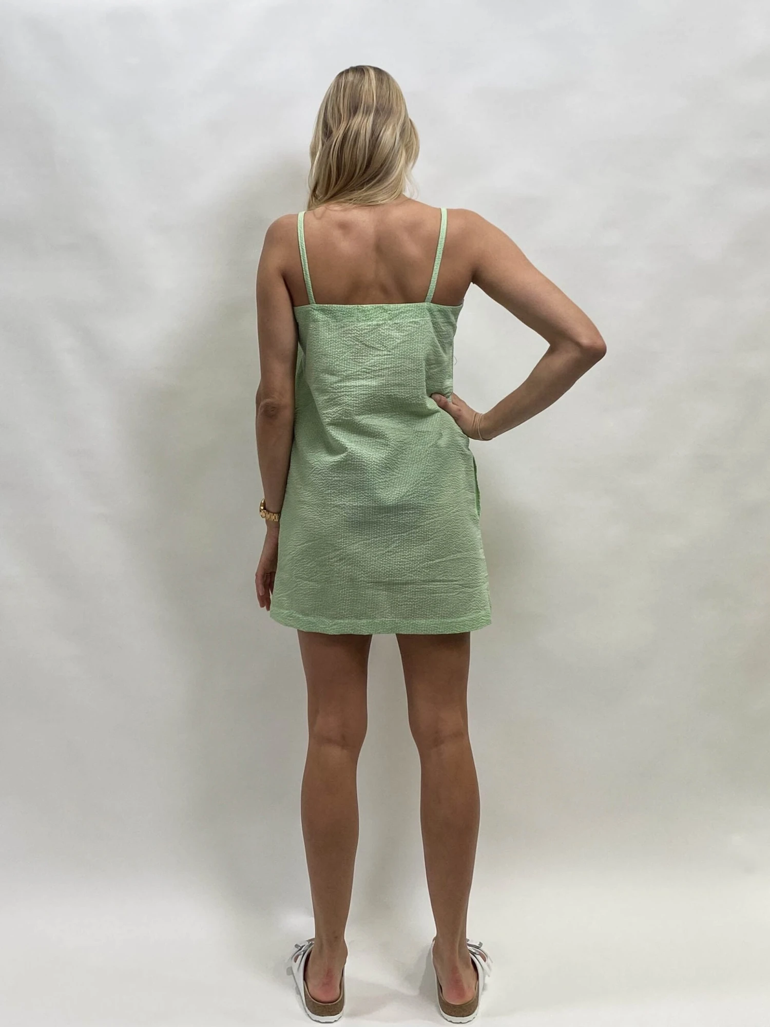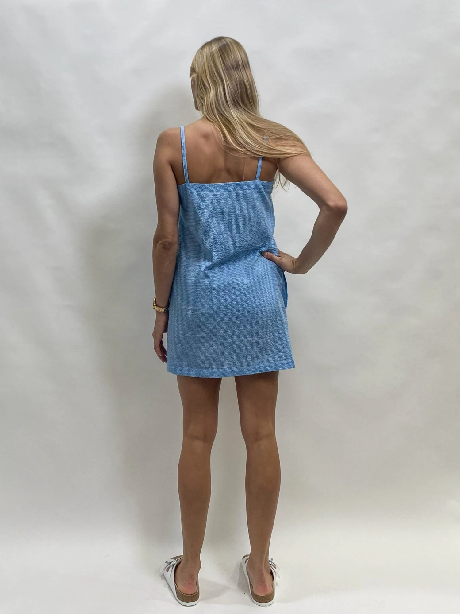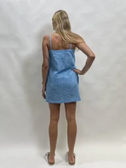 The zellsea linda-v neck dress the perfect slip dress with side pockets and shoe string straps. Slip on for a quick dash to the shops or for those warm summer days by the beach. Made from a small gorgeous check print in 100% cotton this will be your summer go to dress.Â