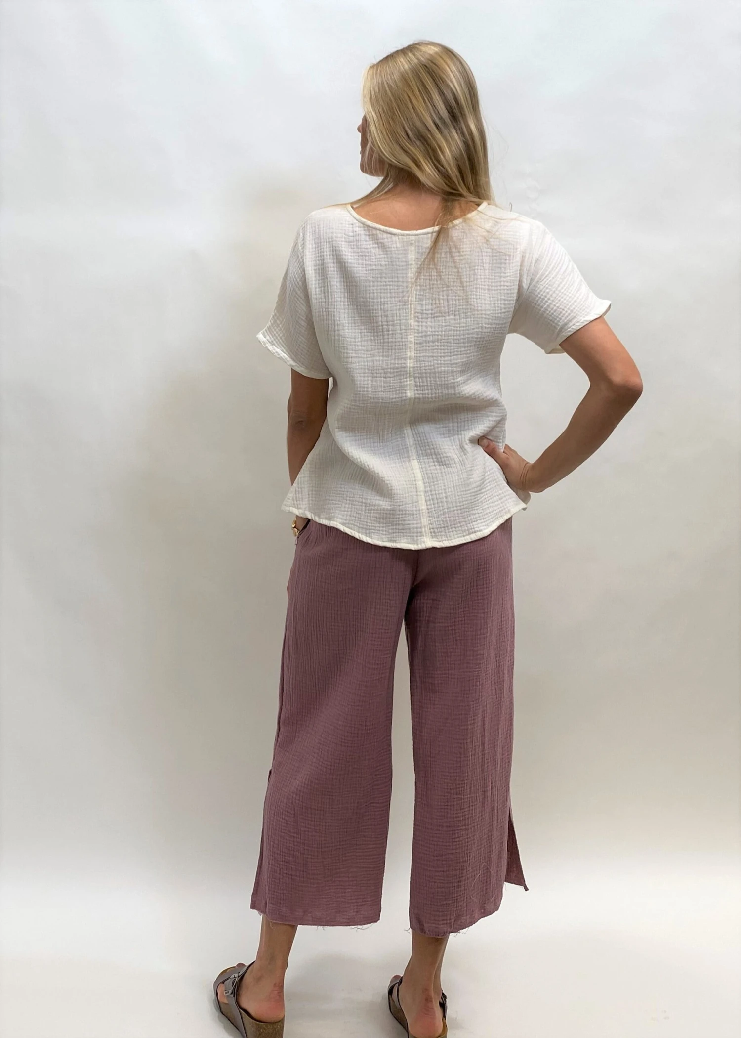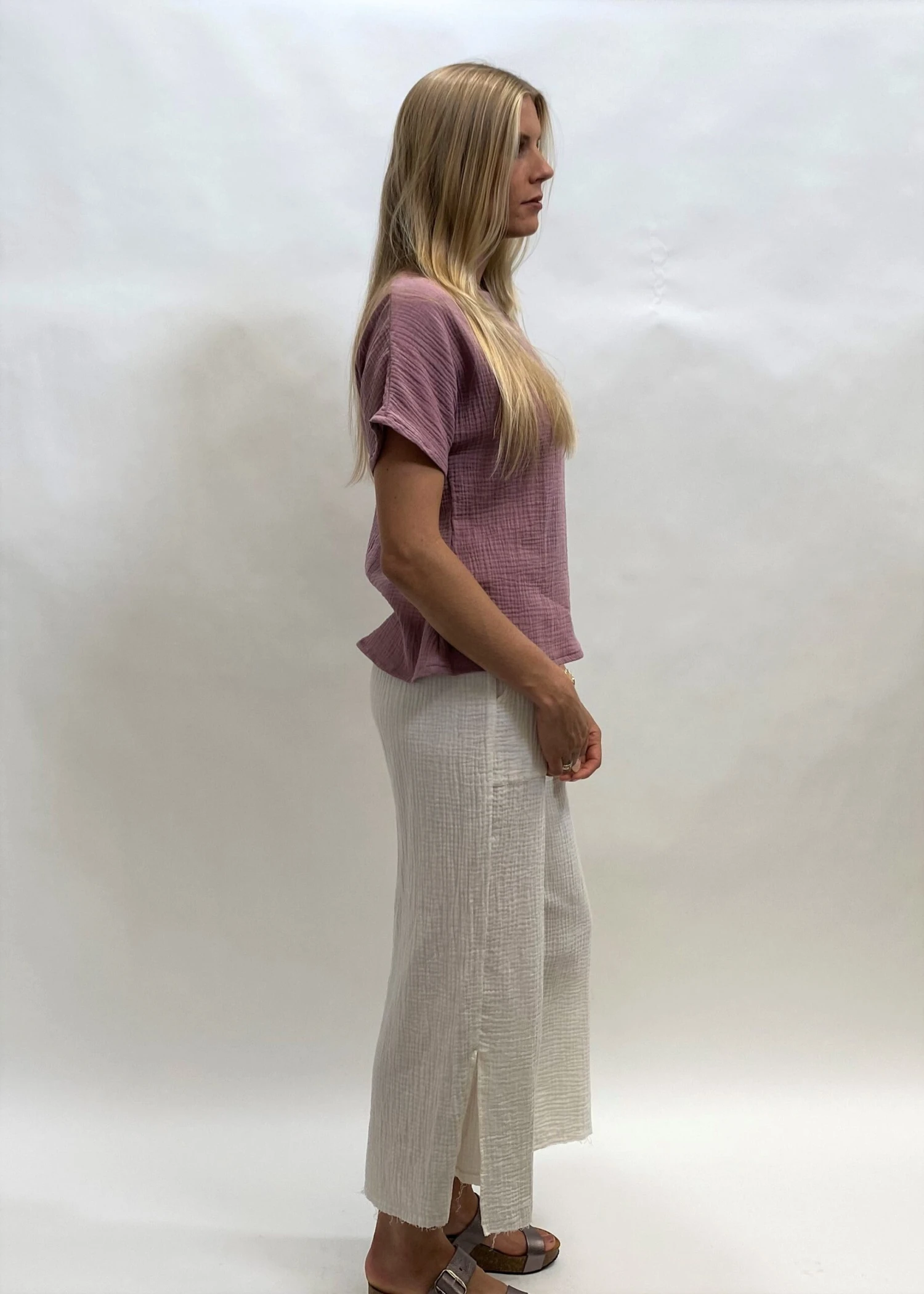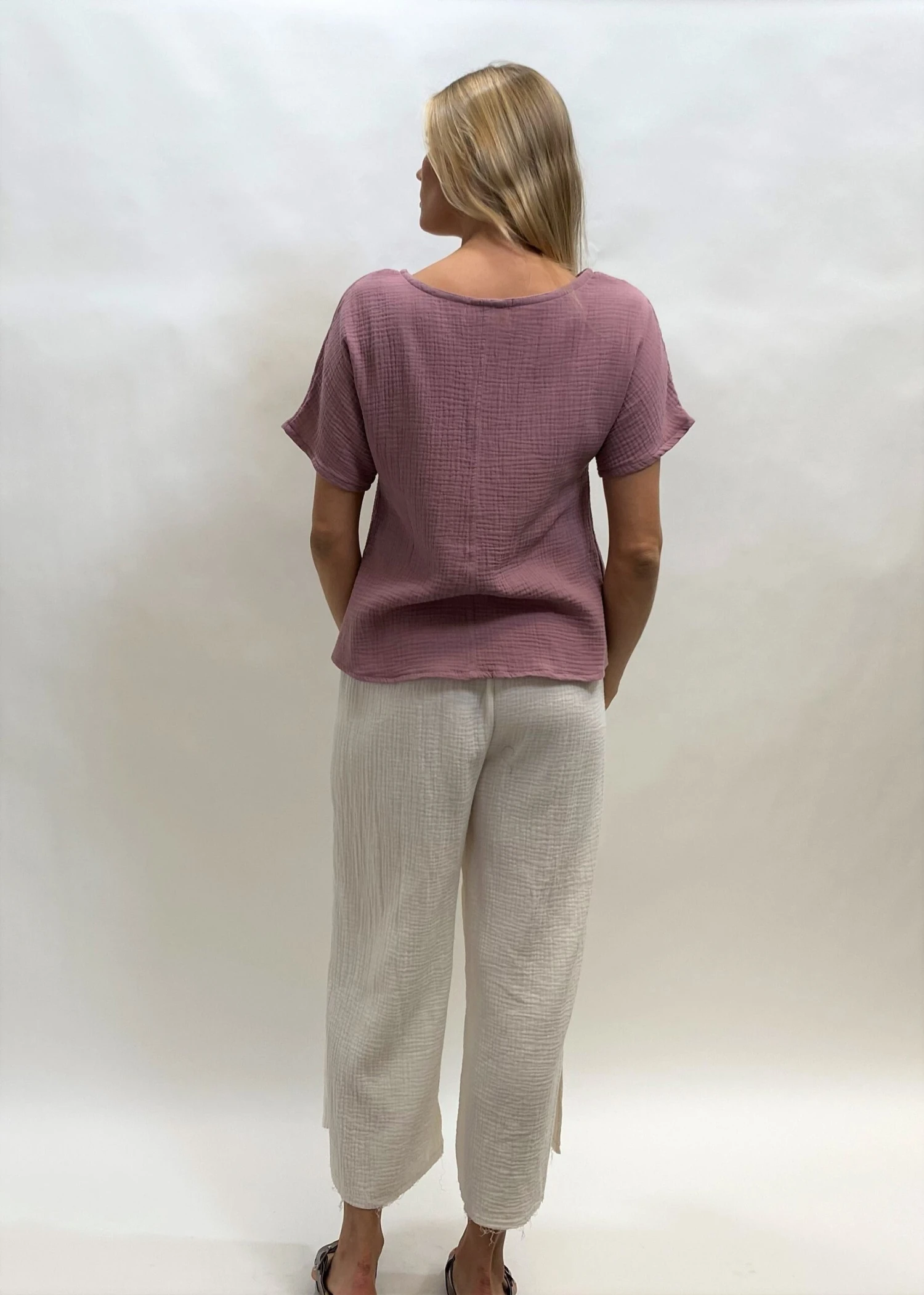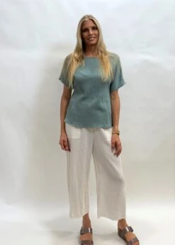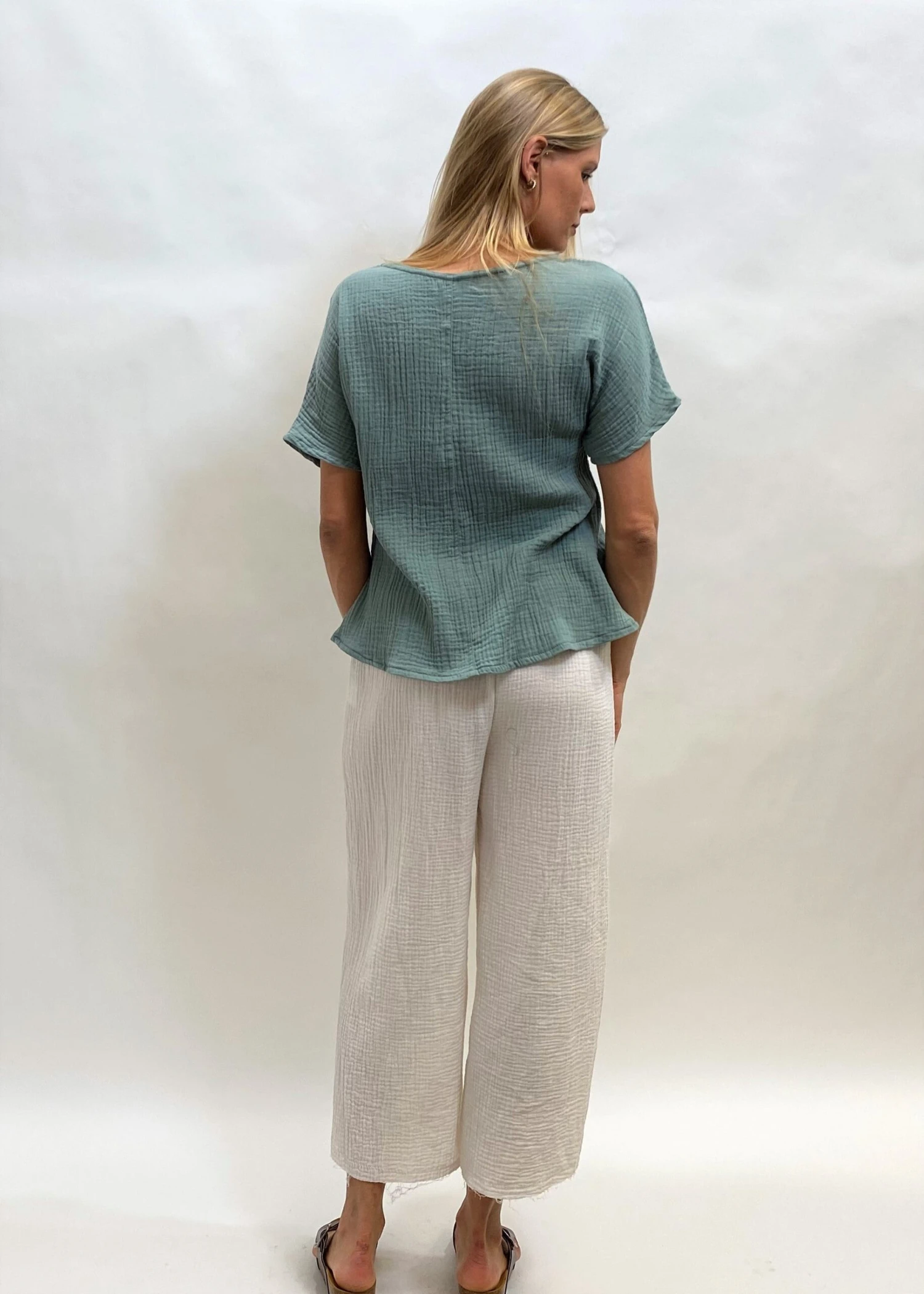 A great summer Top. With sleeves its light weight cool and 100% Organic cotton. Australian made and GOTS ( Global organic textile standard) certified.